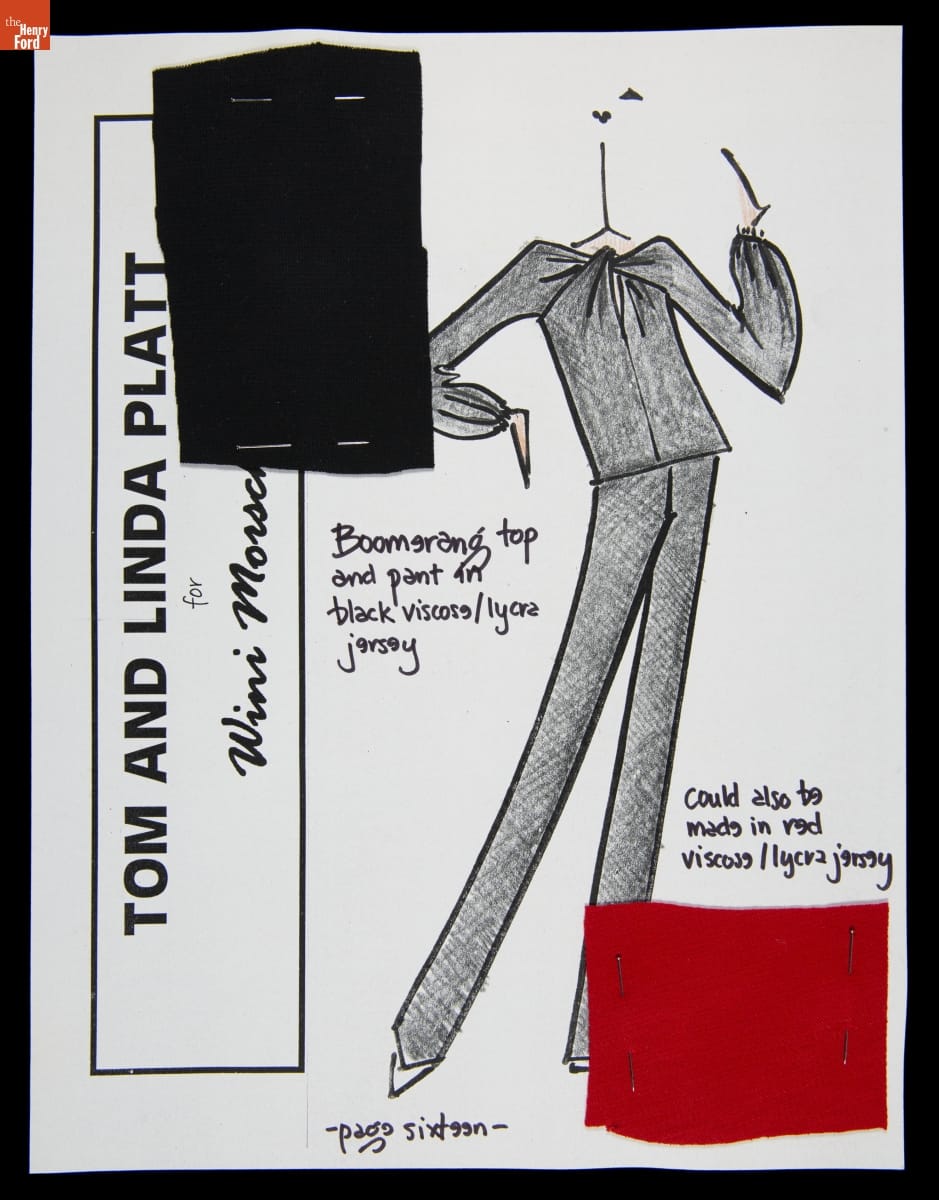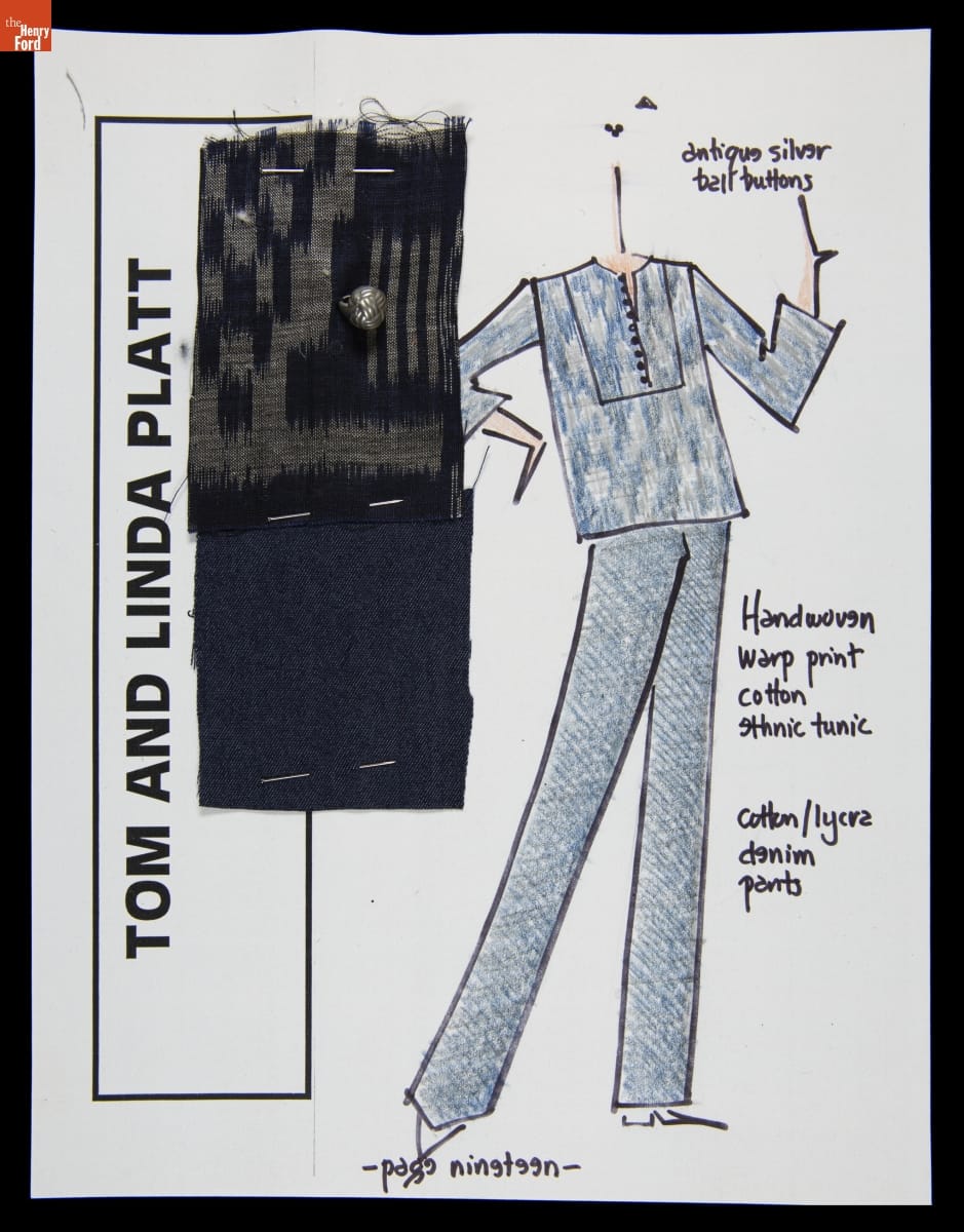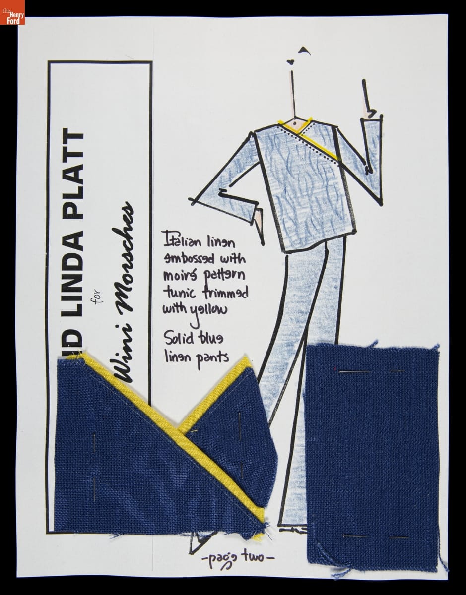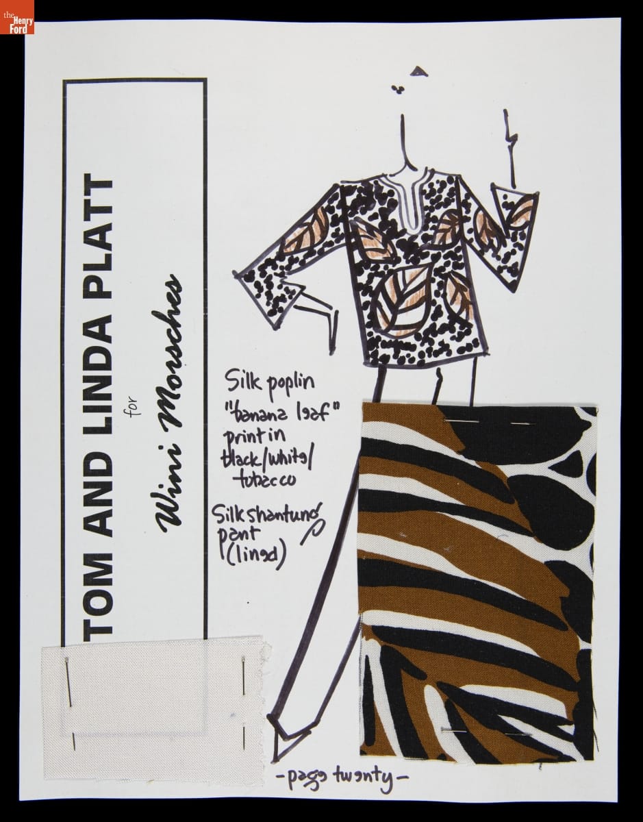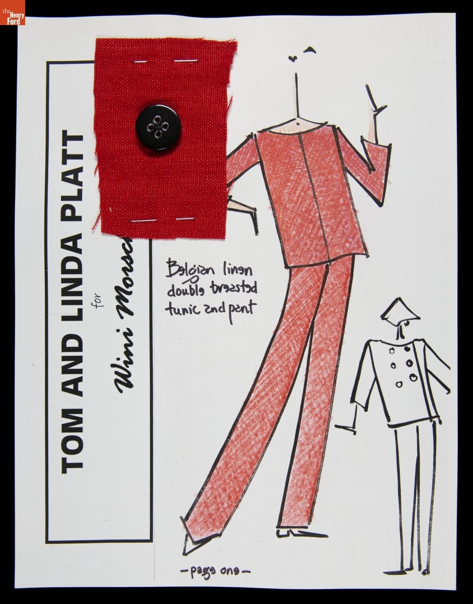 New York designers Tom and Linda Platt believe great clothes should be simple. The couple's timeless designs -- with streamlined silhouettes, bold details, and daring colors -- transcend trends and fashion obsolescence, and are at home in small-town America or cosmopolitan city. This album contains Platt sketches and fabric samples for their client Winifred Jones Morsches, a wealthy woman from a small Indiana town.