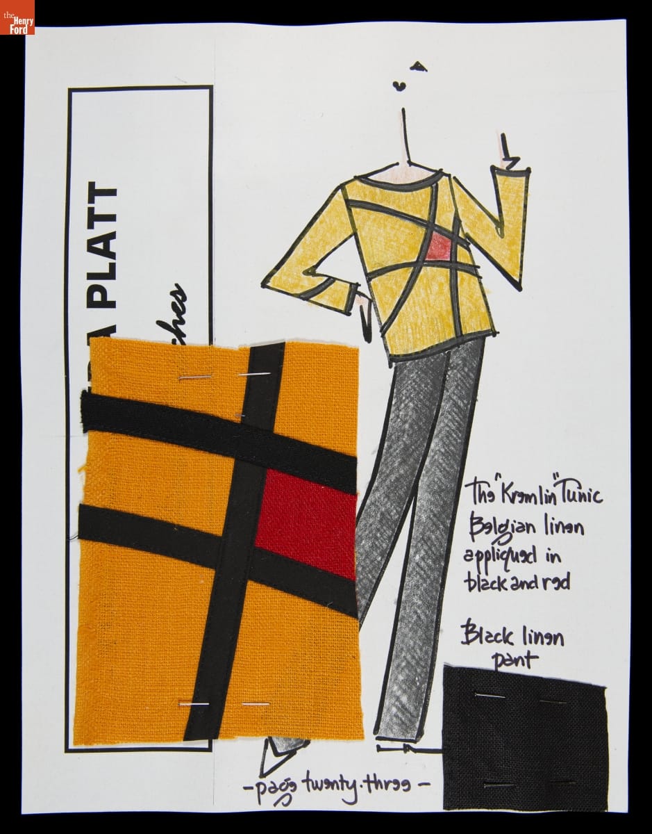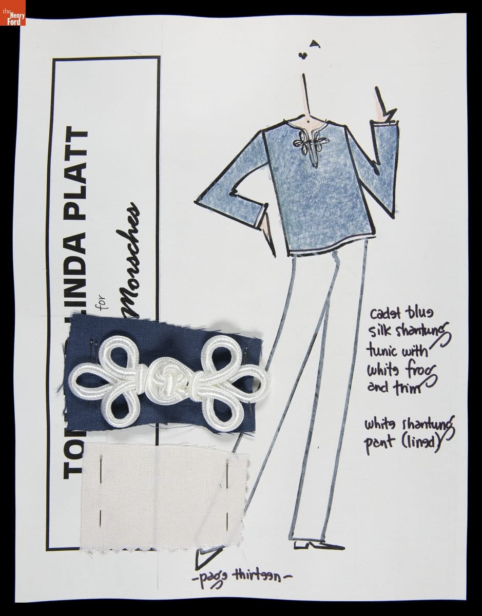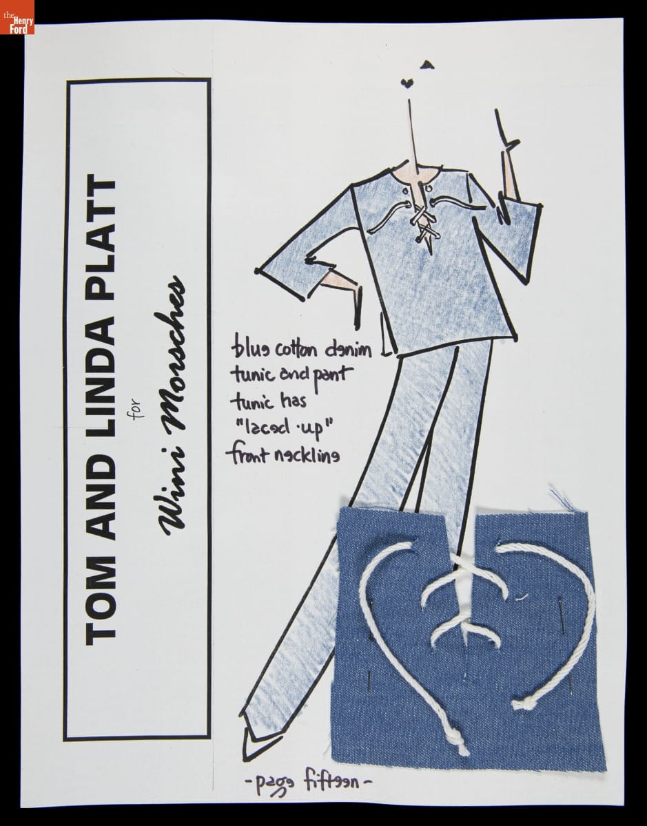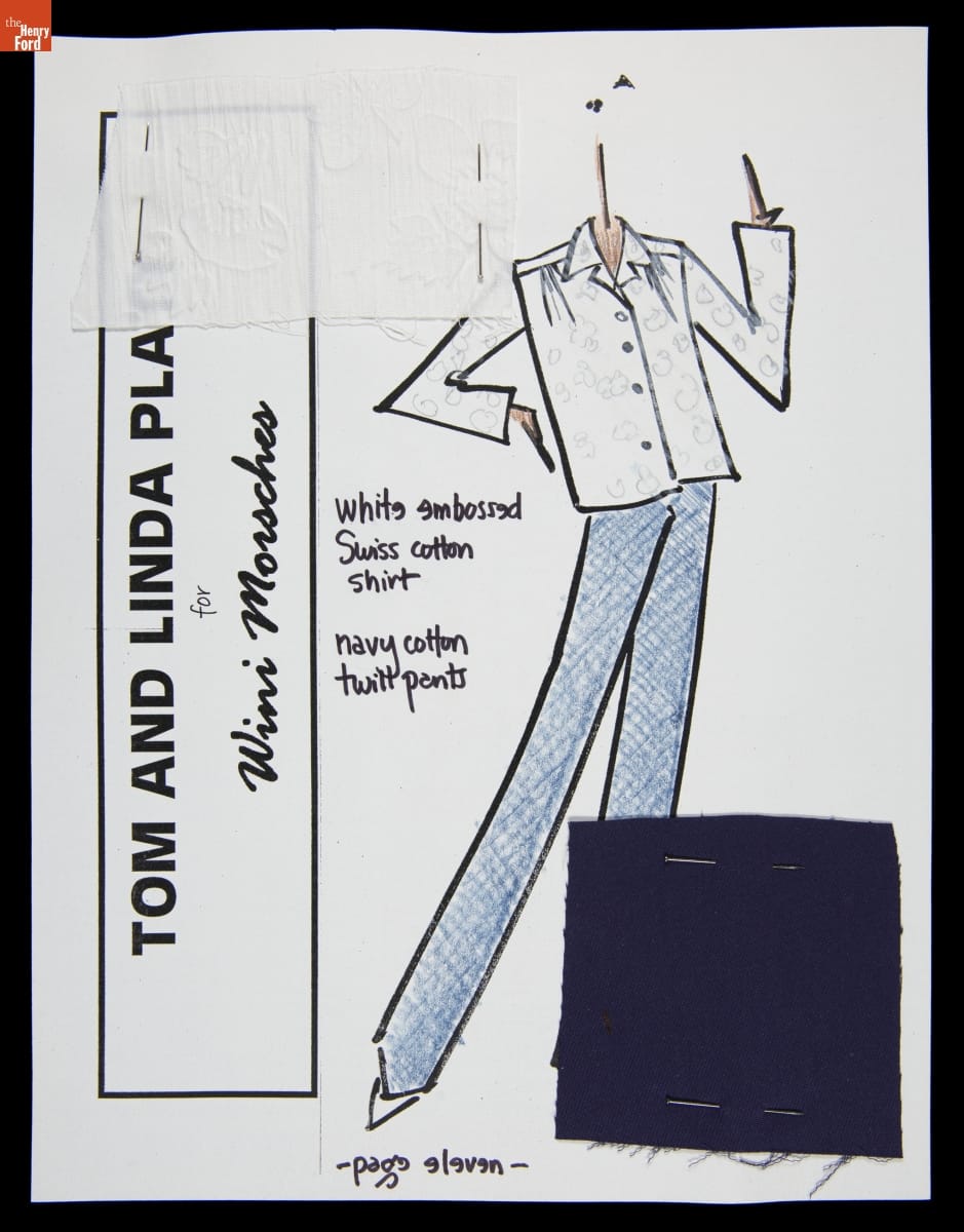 New York designers Tom and Linda Platt believe great clothes should be simple. The couple's timeless designs -- with streamlined silhouettes, bold details, and daring colors -- transcend trends and fashion obsolescence, and are at home in small-town America or cosmopolitan city. This album contains Platt sketches and fabric samples for their client Winifred Jones Morsches, a wealthy woman from a small Indiana town.