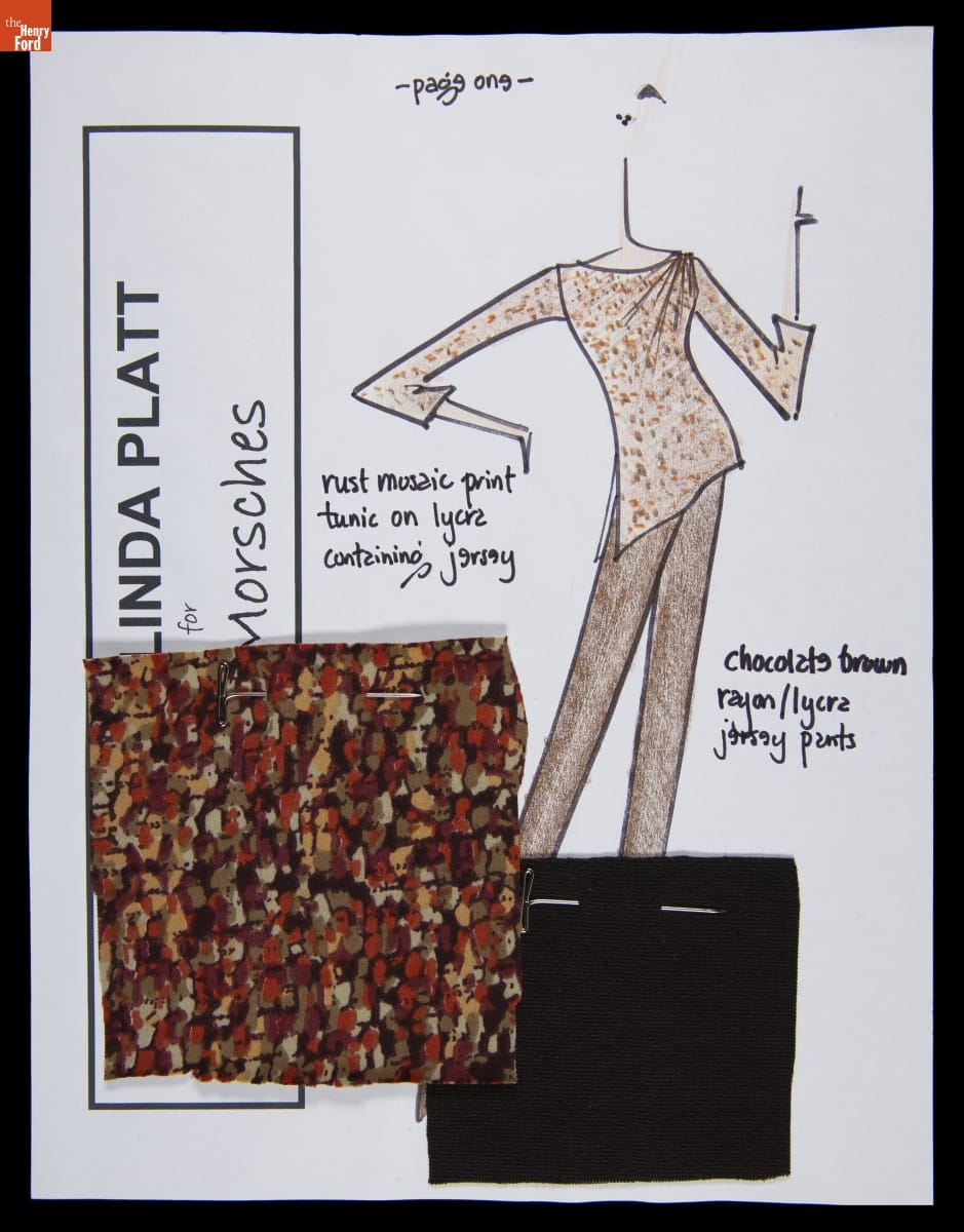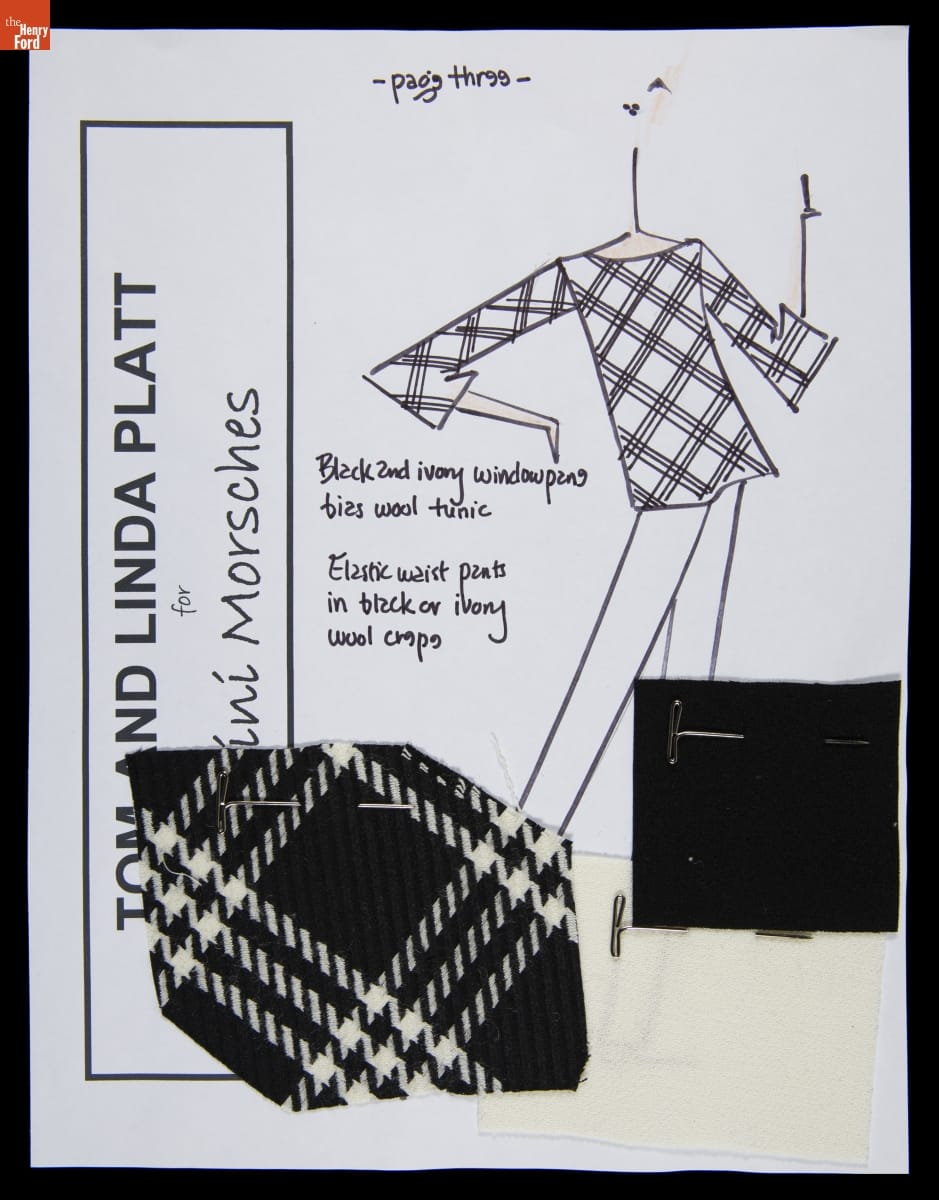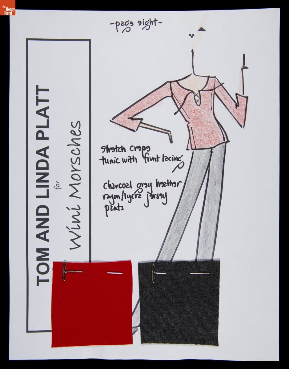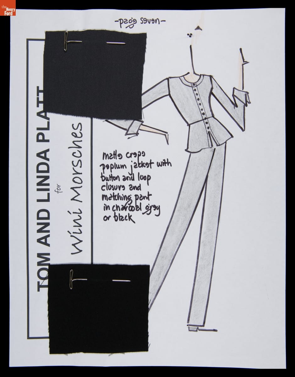 New York designers Tom and Linda Platt believe great clothes should be simple. The couple's timeless designs -- with streamlined silhouettes, bold details, and daring colors -- transcend trends and fashion obsolescence, and are at home in small-town America or cosmopolitan city. This album contains Platt sketches and fabric samples for their client Winifred Jones Morsches, a wealthy woman from a small Indiana town.