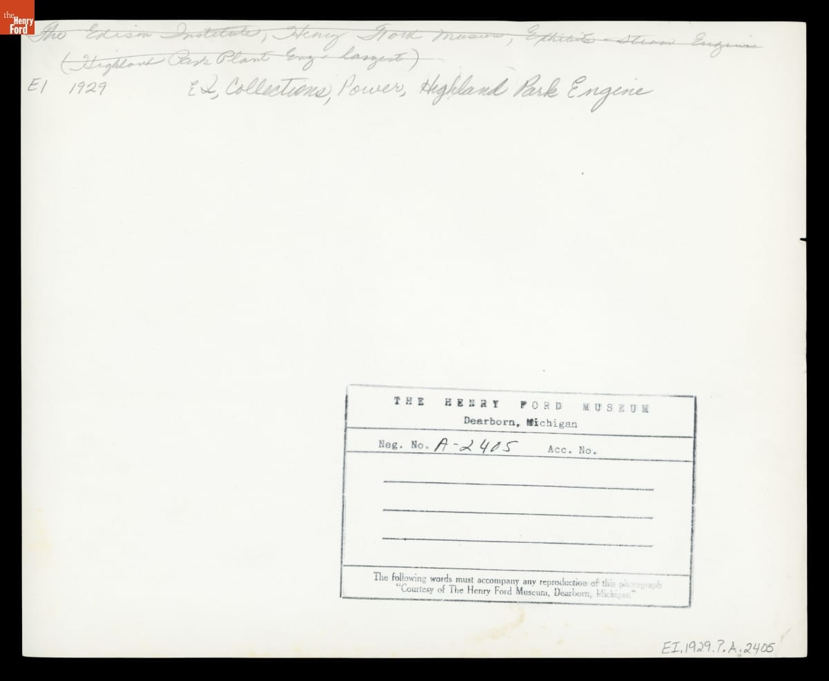 Gas-Steam Engine Used at the Ford Highland Park Plant, on Exhibit in Henry Ford Museum, circa 1953