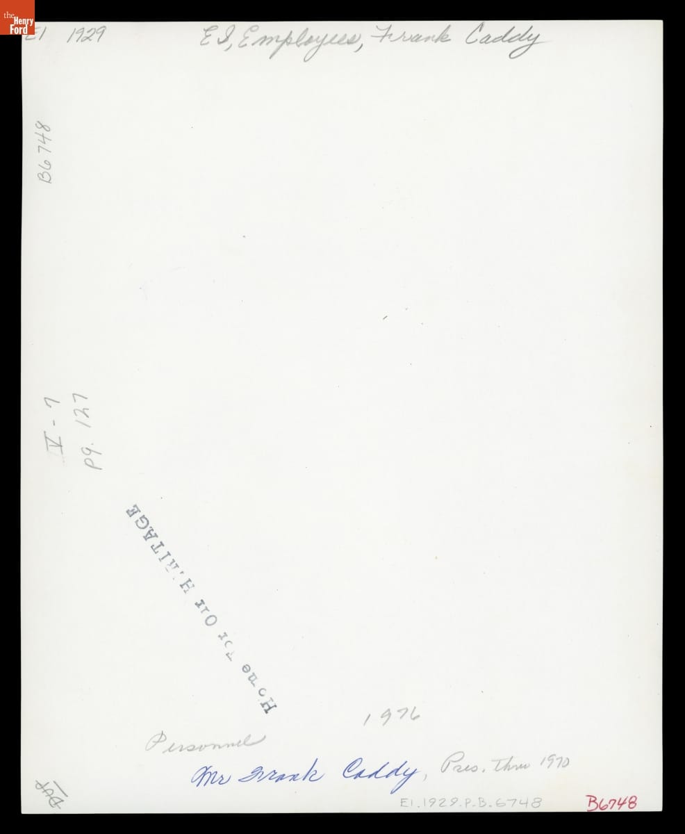 Frank Caddy first came to the Edison Institute museum -- today's The Henry Ford -- as a student at Henry Ford Trade School in 1932. He earned a degree at Detroit Business College and worked his way up through the museum's business offices. Caddy was appointed president of the Edison Institute in 1976 and held that title until his retirement in 1980.