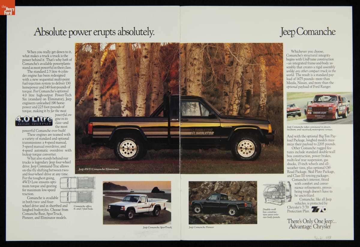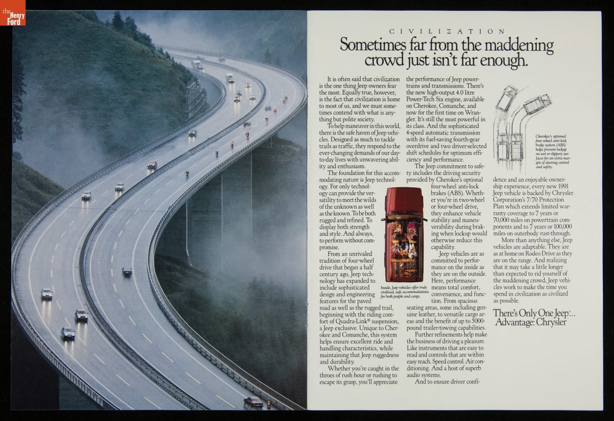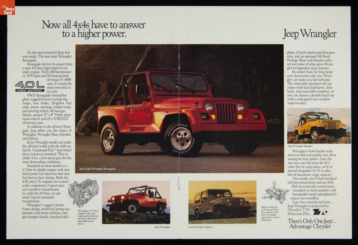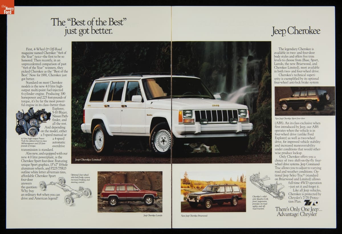 Jeep celebrated its 50th anniversary in 1991. The brand, which famously traced its roots to the little four-wheel-drive reconnaissance vehicle developed for World War II, grew over the decades to include wagons, trucks, and sport utility vehicles too. Jeep also went through multiple owners: Willys-Overland, Kaiser Motors, AMC, and Chrysler Corporation.
