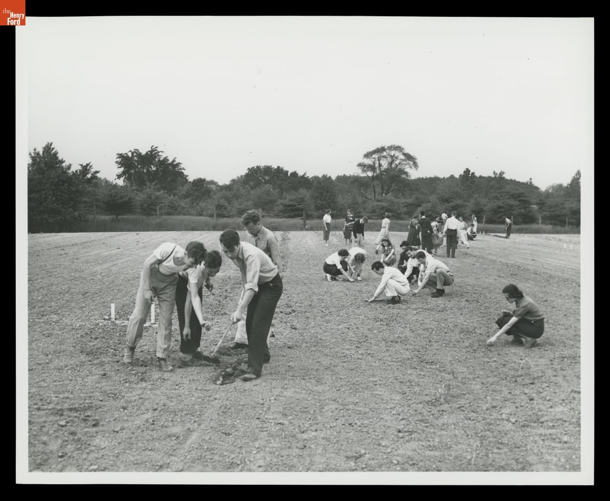Edison Institute Schools Students Working in Vegetable Garden in Greenfield Village, June 1937