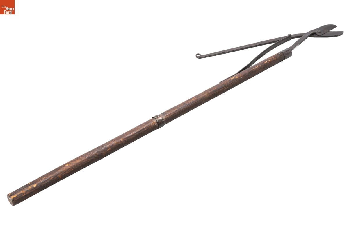 Gardeners and orchardists use pruning shears to shape young trees, remove damaged or diseased limbs, and maintain tree health. Fruit-bearing trees especially need annual pruning to ensure that flowers and buds have adequate light and airflow to set and form the best fruit. These pruning shears attached to a long handle make branches higher in trees easier to reach.