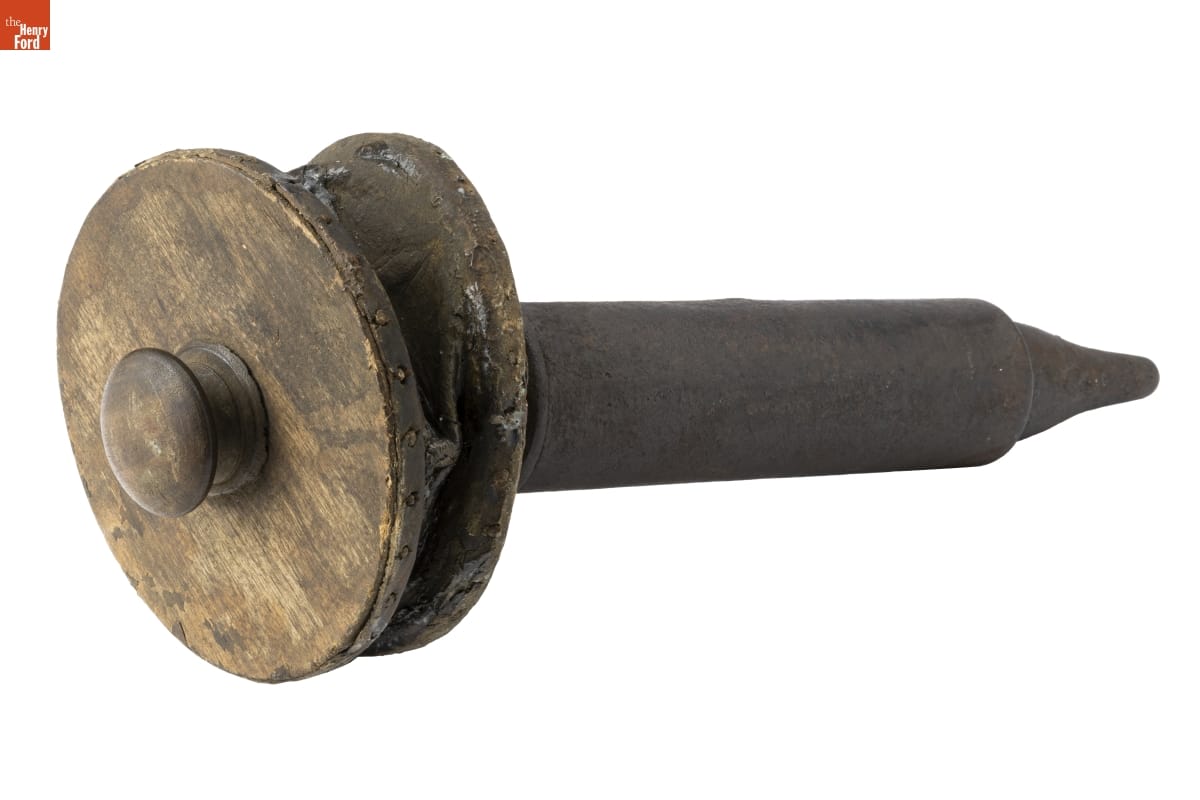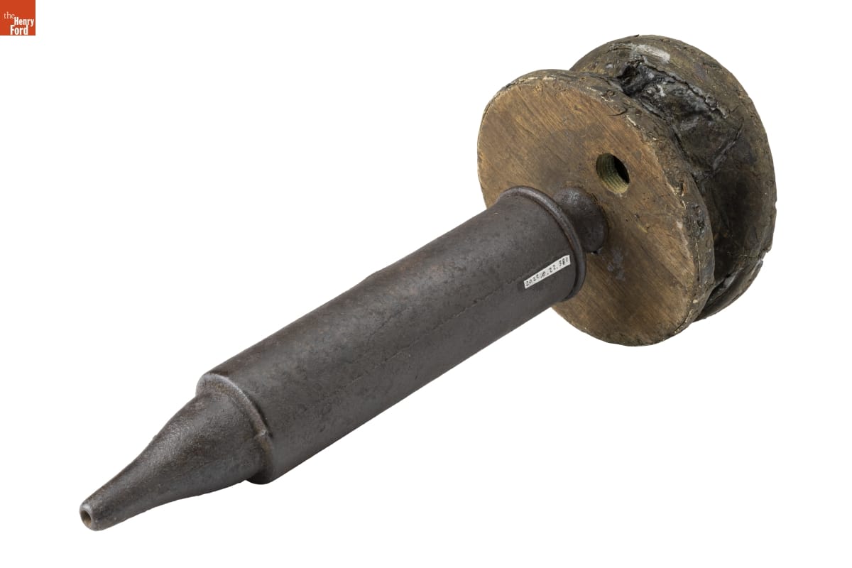 Beekeepers always have a smoker near when they open hives. The smoker masks the "danger" pheromone that bees emit when threatened which slows the colony's response. The smoke also simulates fire which prompts bees to eat honey in preparation for rebuilding a destroyed hive. This smoker's spout channeled smoke into the hive without the risk of dropping the fuel source into the hive.