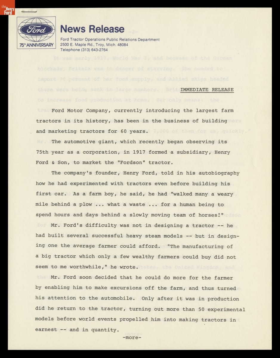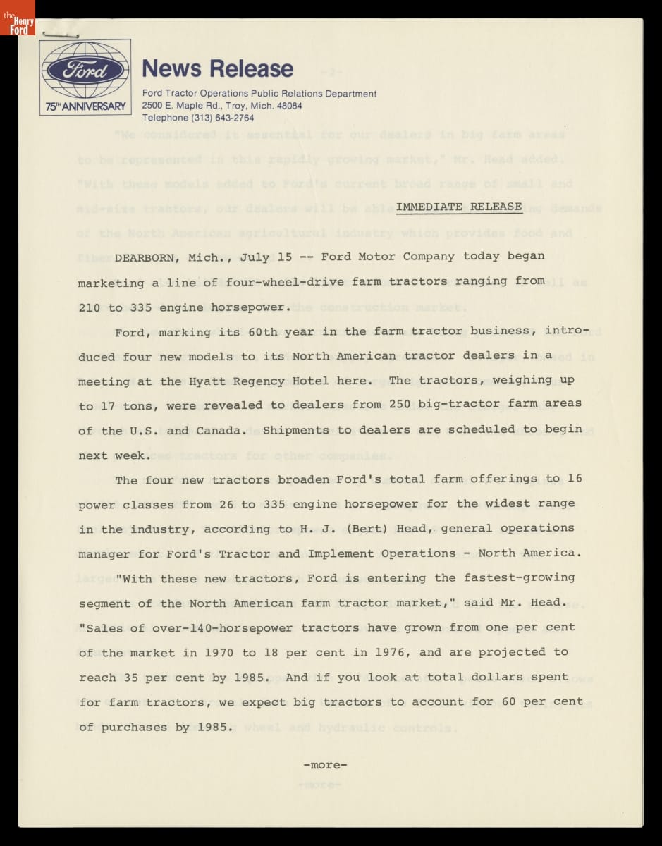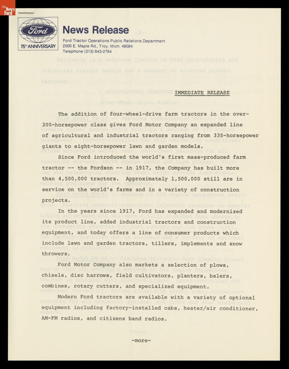 Ford 75th Anniversary, News Information, 1978