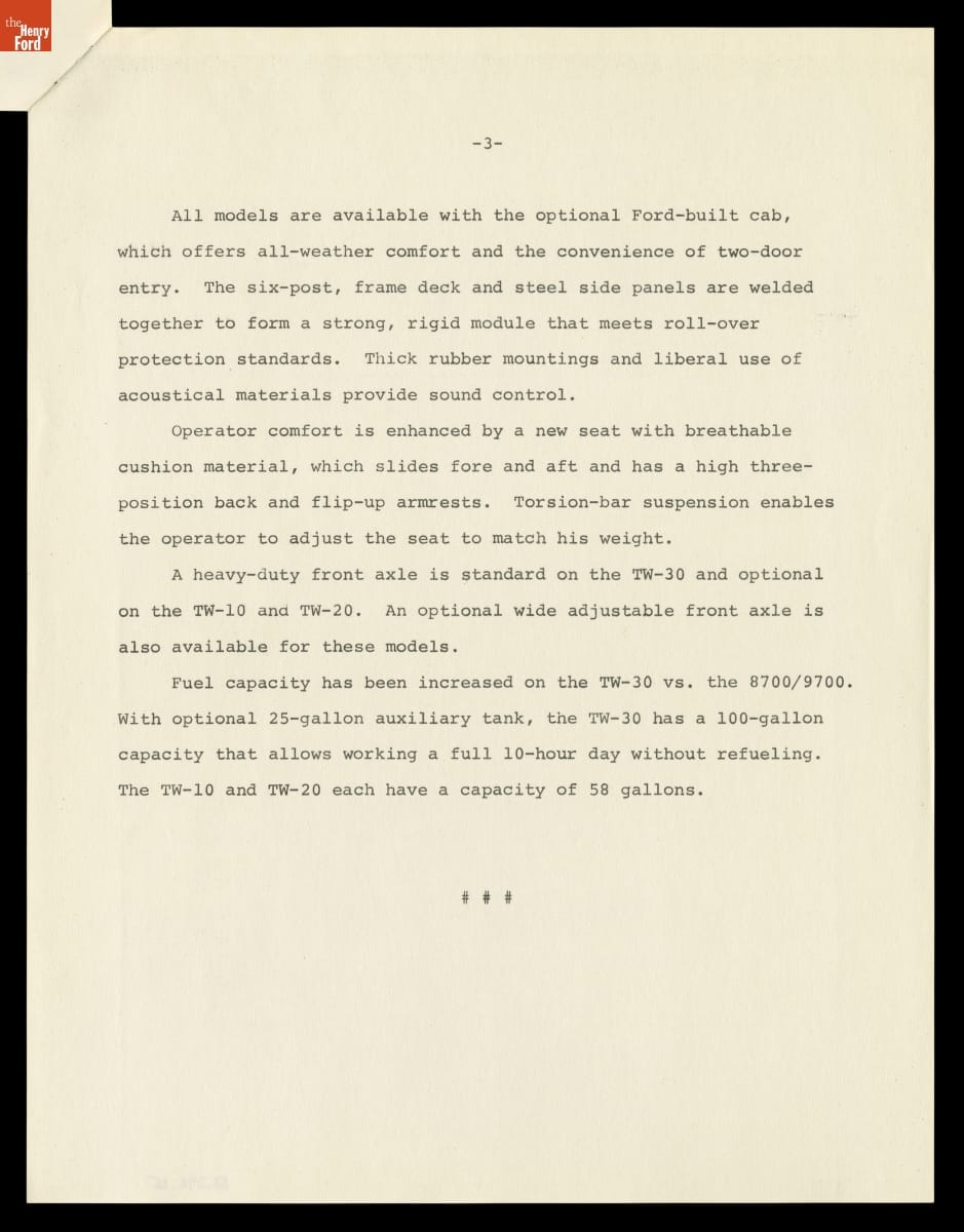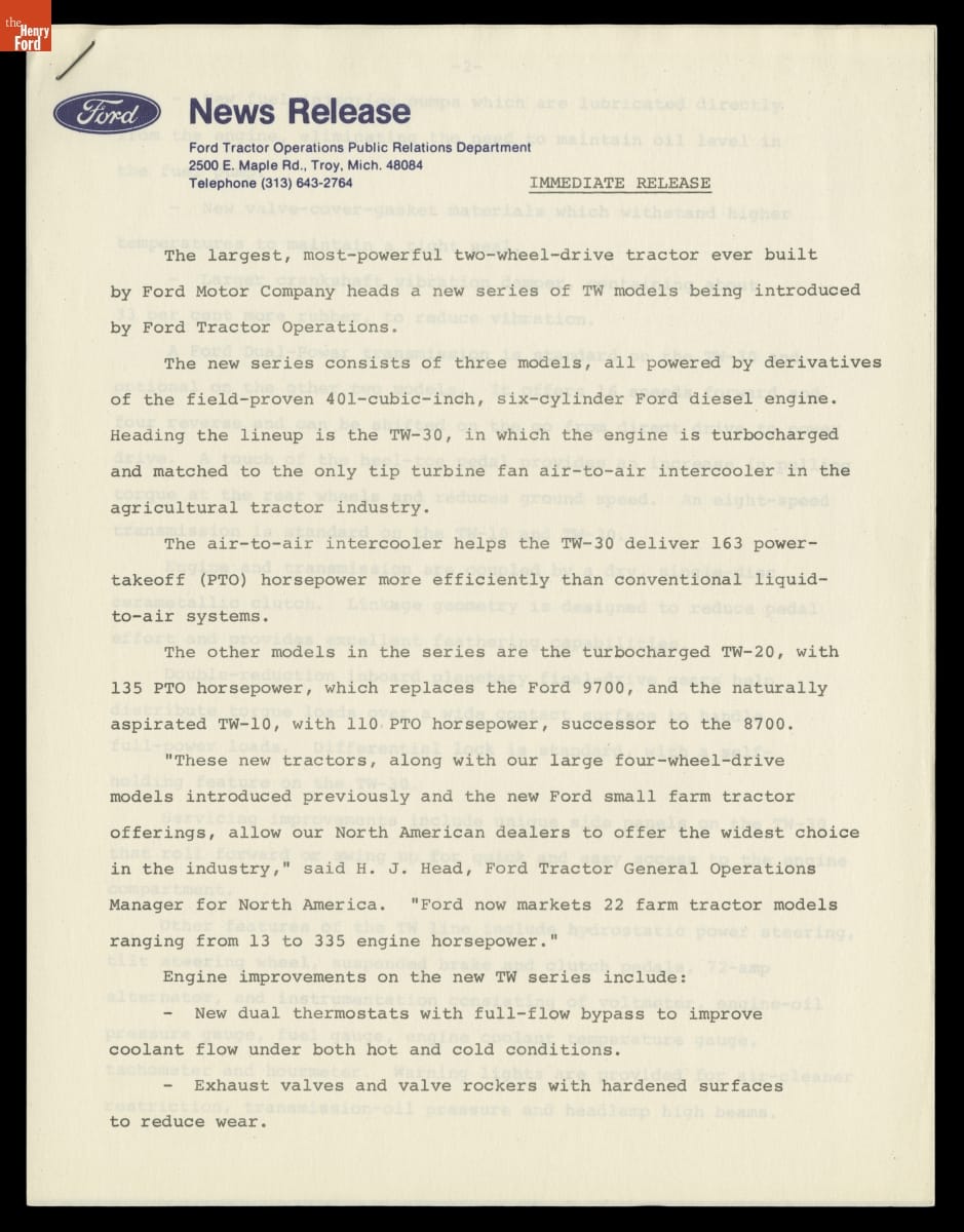 Ford TW-30 Heads a New Series of TW Farm Tractors from Ford Motor Company, 1979