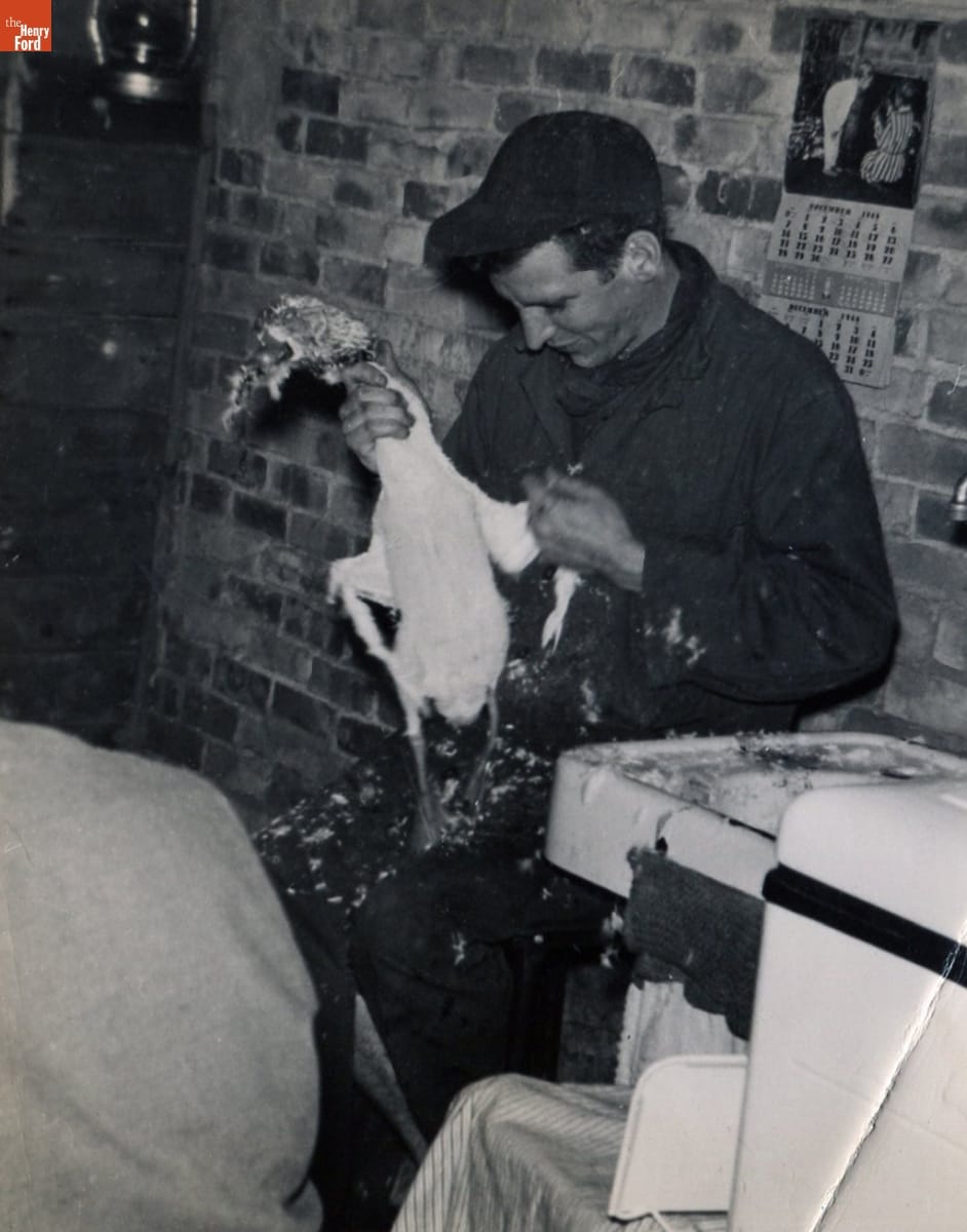 Bob Kelley Plucking a Duck on the Night before Thanksgiving, November 24, 1948