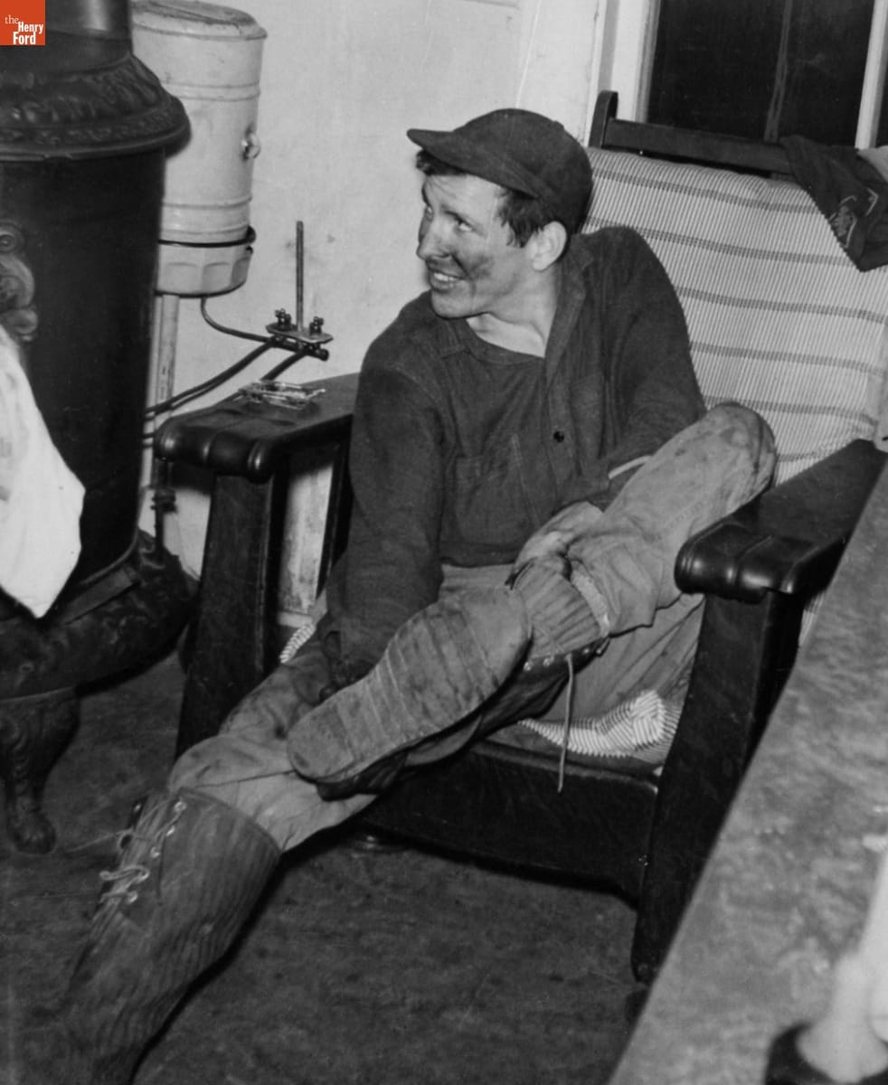 Bob Kelley near the Kitchen Heating Stove in the Kelley House in Rockville, Connecticut, 1948