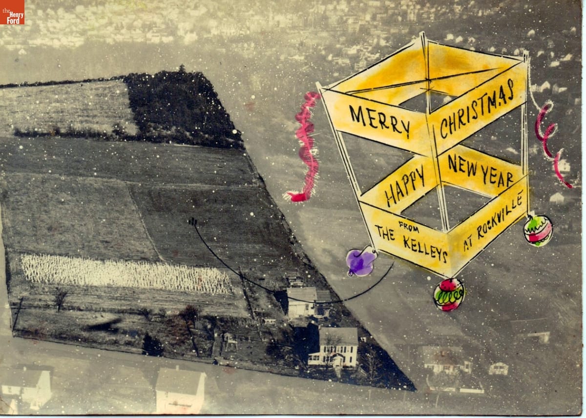 Christmas Card with an Aerial View of the Kelley Farm, Rockville, Connecticut