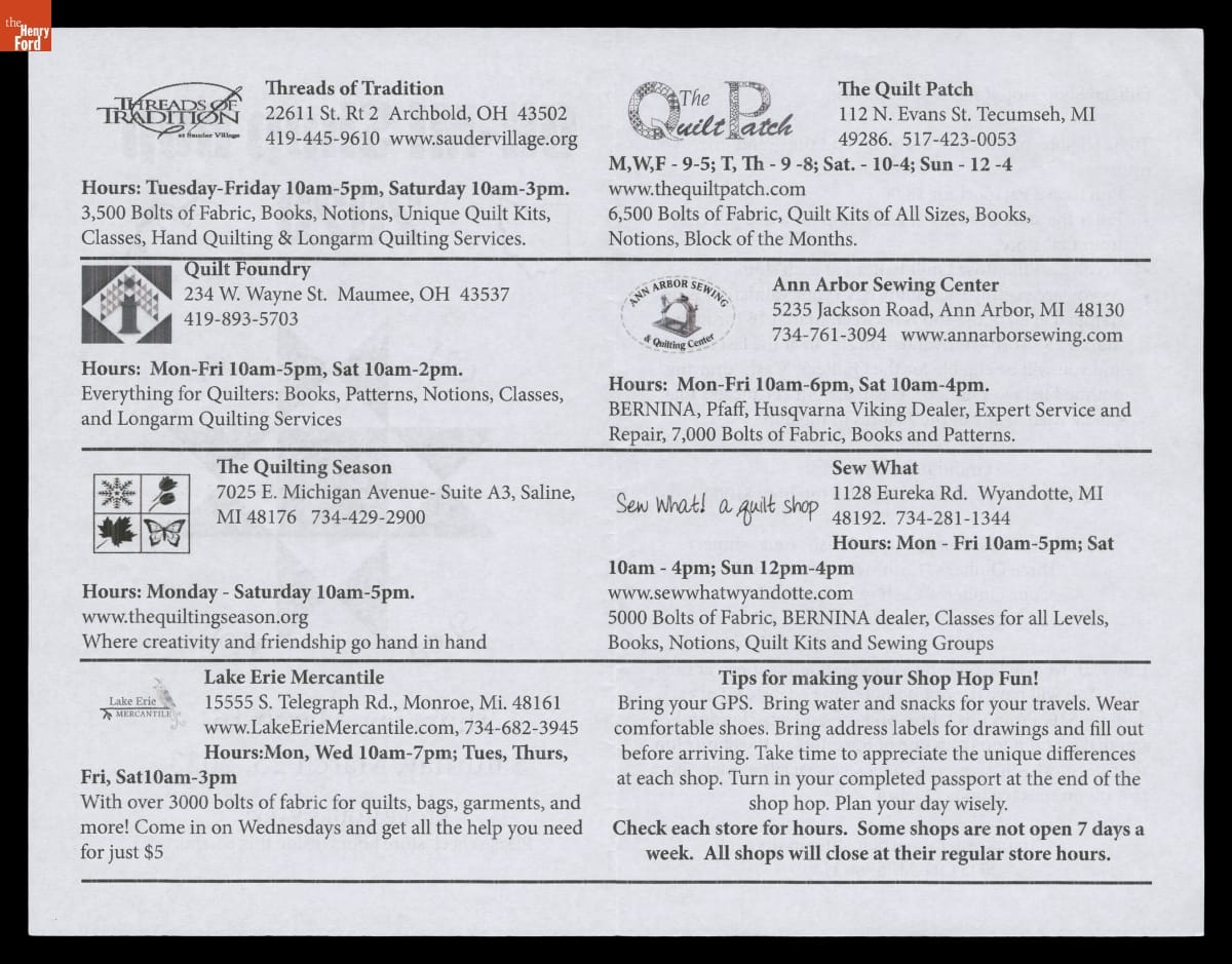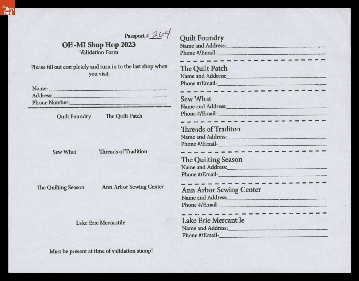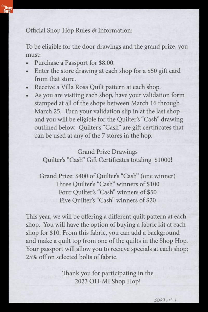 "Passport for OH-MI Shop Hop 2023," March 16-25, 2023