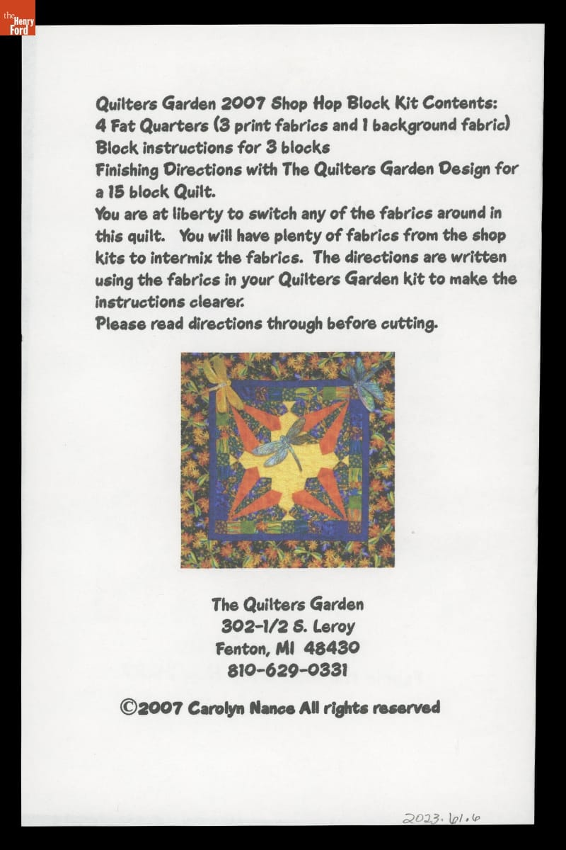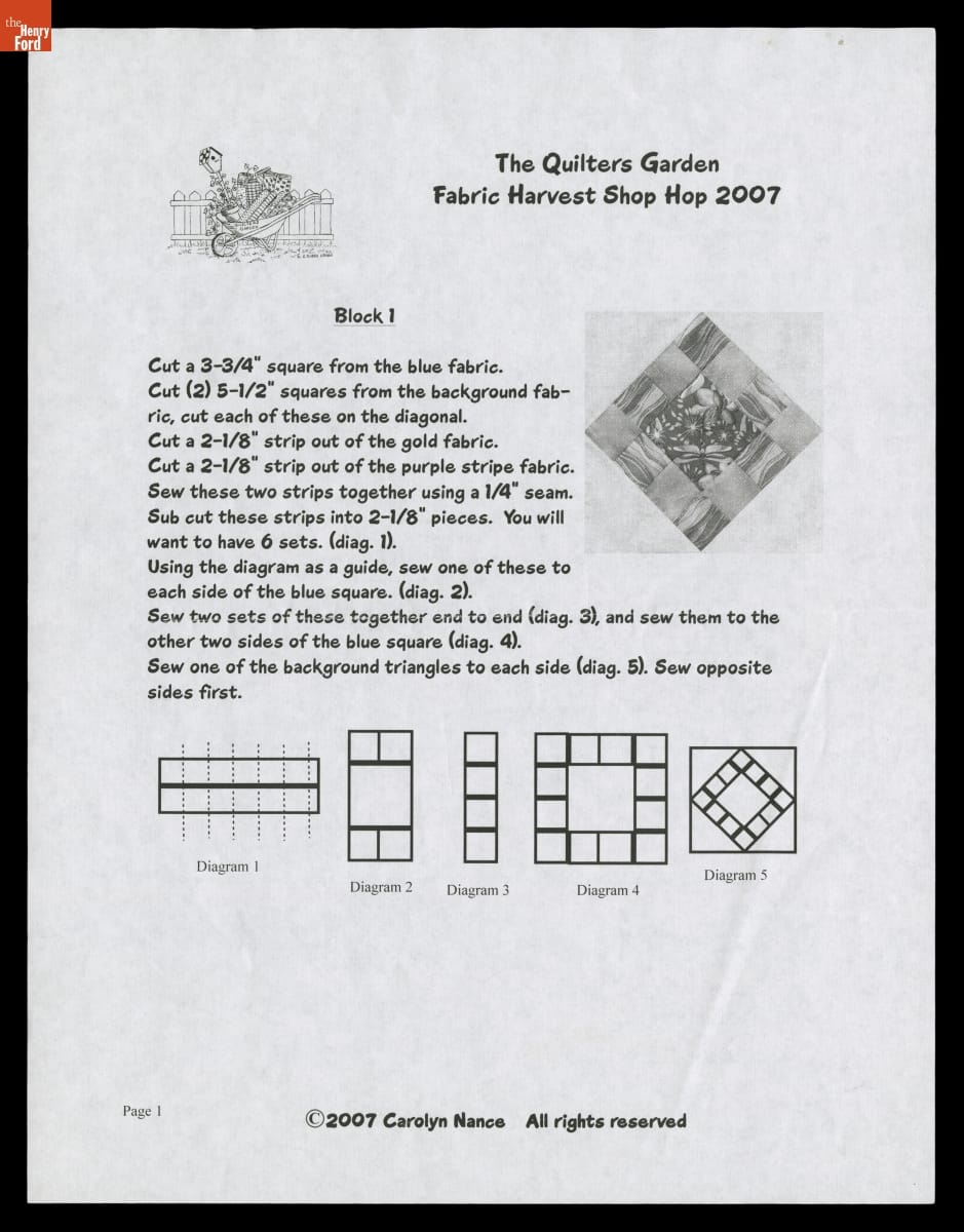 Quilt Pattern, "The Quilters Garden Fabric Harvest Shop Hop 2007"