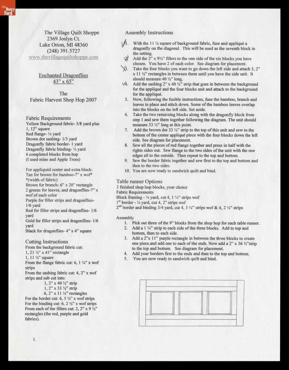 "Welcome to Olde World Canterbury Village Fabric Harvest Shop Hop," September 2007
