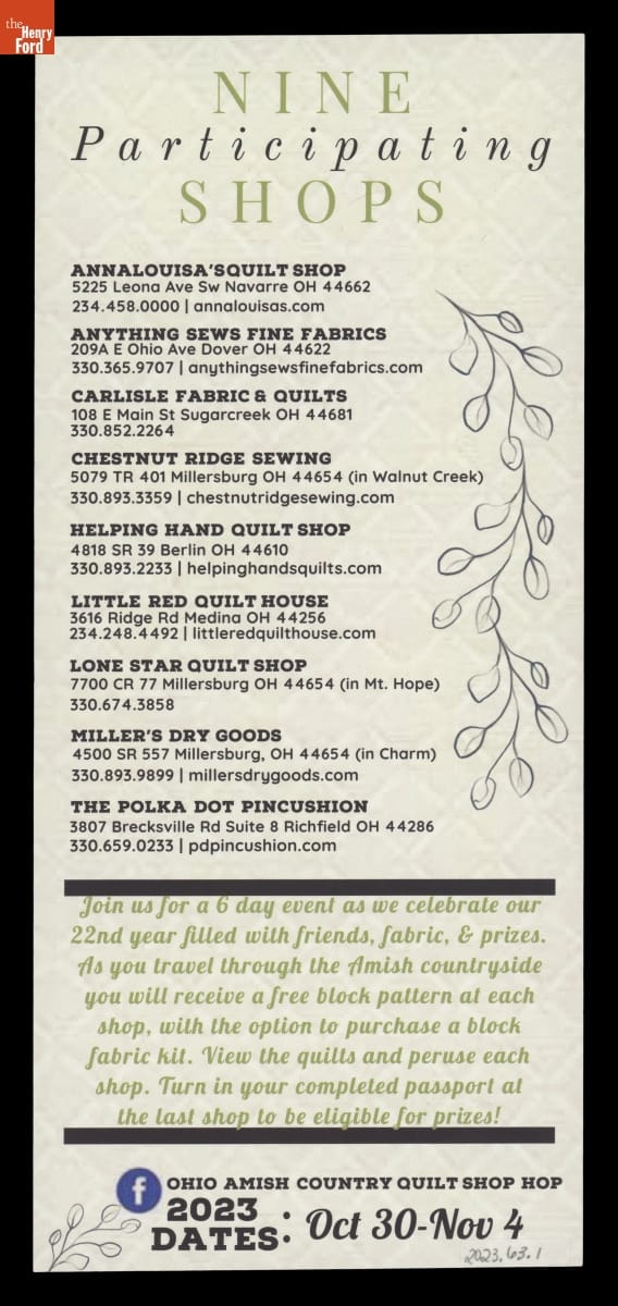 Rack Card, "Ohio Amish Country Quilt Shop Hop: Coasting Through Year 22," 2022
