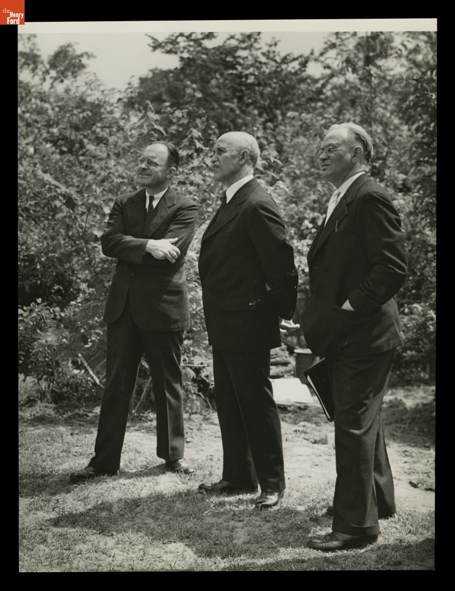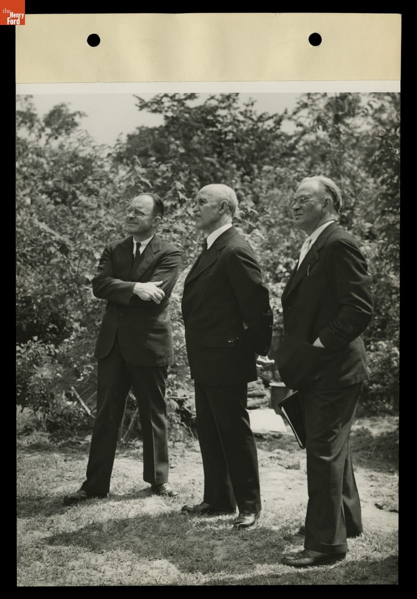 Fred Black, Orville Wright, and Edward Cutler during Reconstruction of Wright Home in Greenfield Village, June 1937