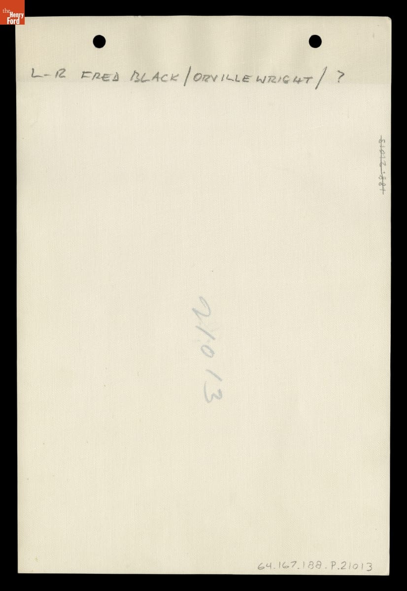 Fred Black headed Ford Motor Company's advertising department. As a pilot and aviation enthusiast, Black coordinated relocation of Wright Cycle Shop and the Wright Home from Dayton, Ohio, to Henry Ford's Greenfield Village in Dearborn, Michigan. Architect Edward Cutler oversaw reassembly of the buildings. Orville Wright shared his own unique insights to ensure the project's accuracy.