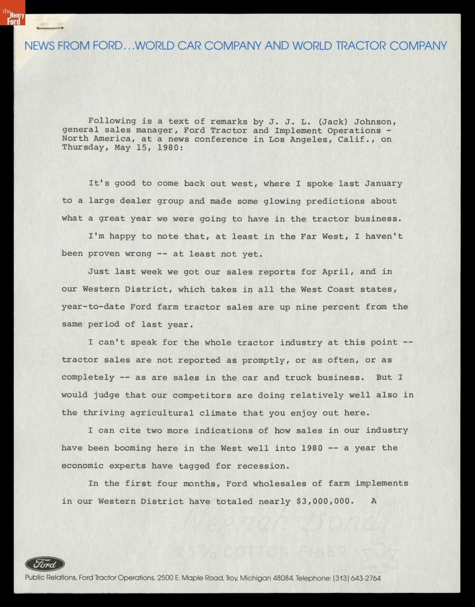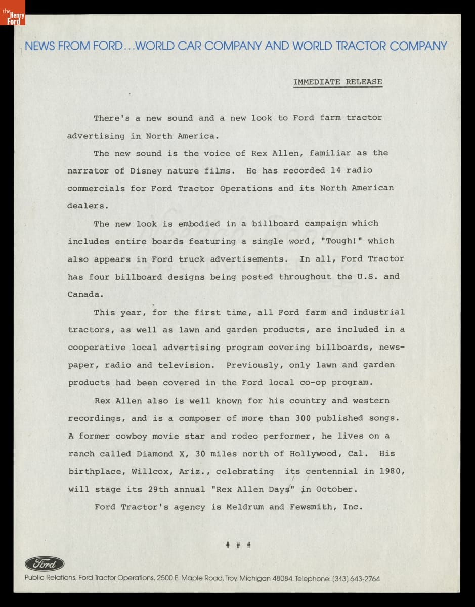 "The New Look...The New Sound of...TOUGH! Ford Tractors," 1980