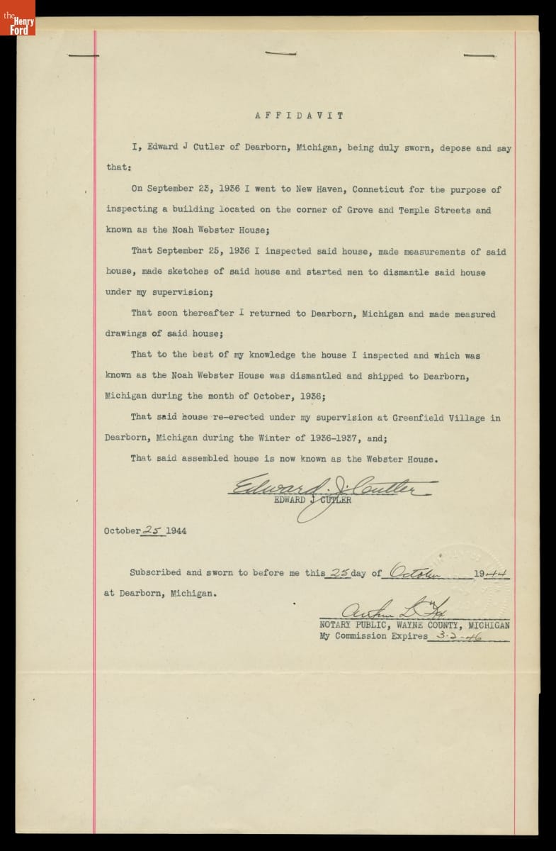 Relocating the Noah Webster Home from New Haven, Connecticut to Greenfield Village