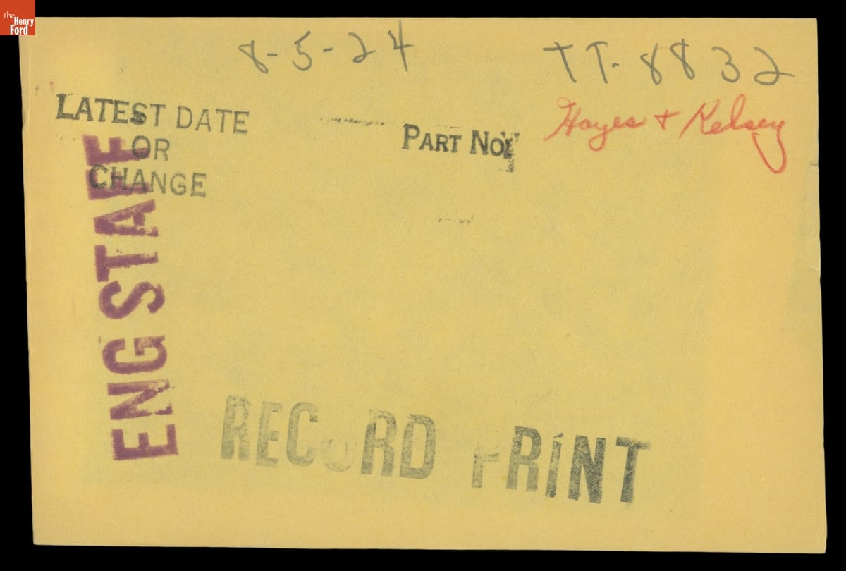 The Ford Motor Company created over a million parts drawings from 1903 to 1957. Many of these drawings specify engineering requirements for the components of Ford-made vehicles--including automobiles, trucks, tractors, military vehicles and Tri-motor airplanes. Others document assembly components, stages of casting and forging, or experimental designs. Beginning in the 1940s, Ford transferred the drawings to microfilm.