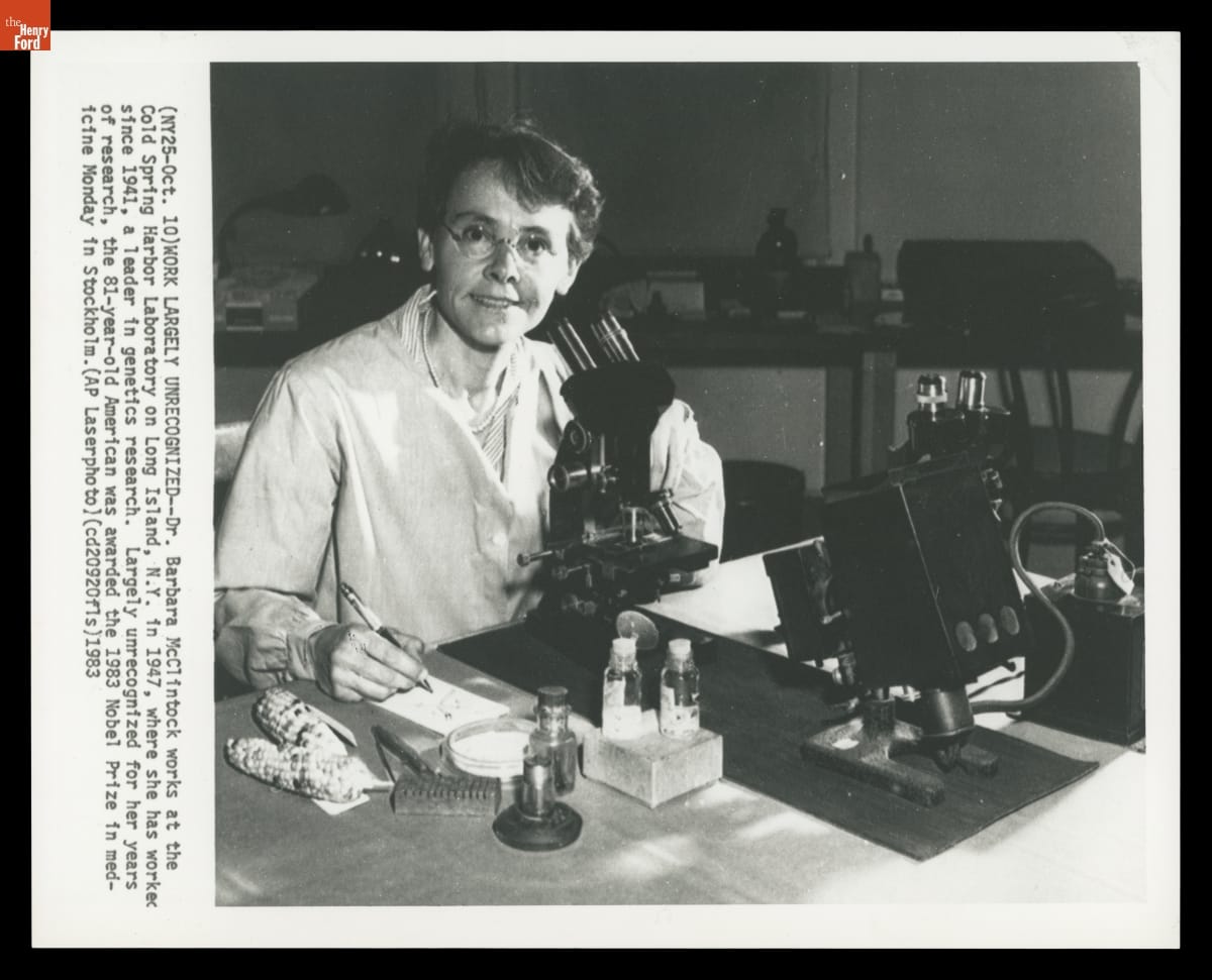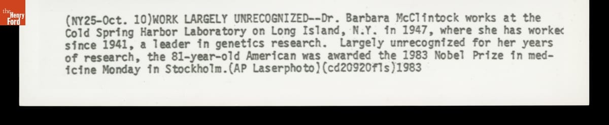Dr. Barbara McClintock, Winner of the Nobel Prize in Medicine, in Her Laboratory, 1983