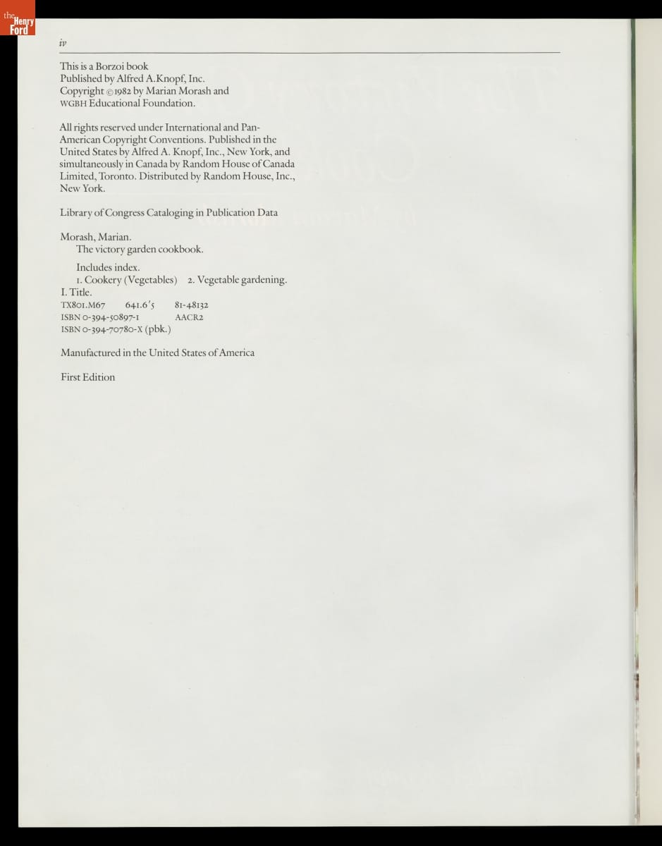 "The Victory Garden Cookbook," 1982