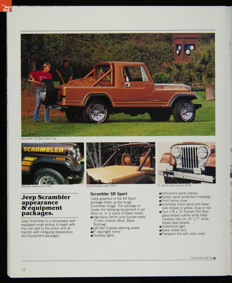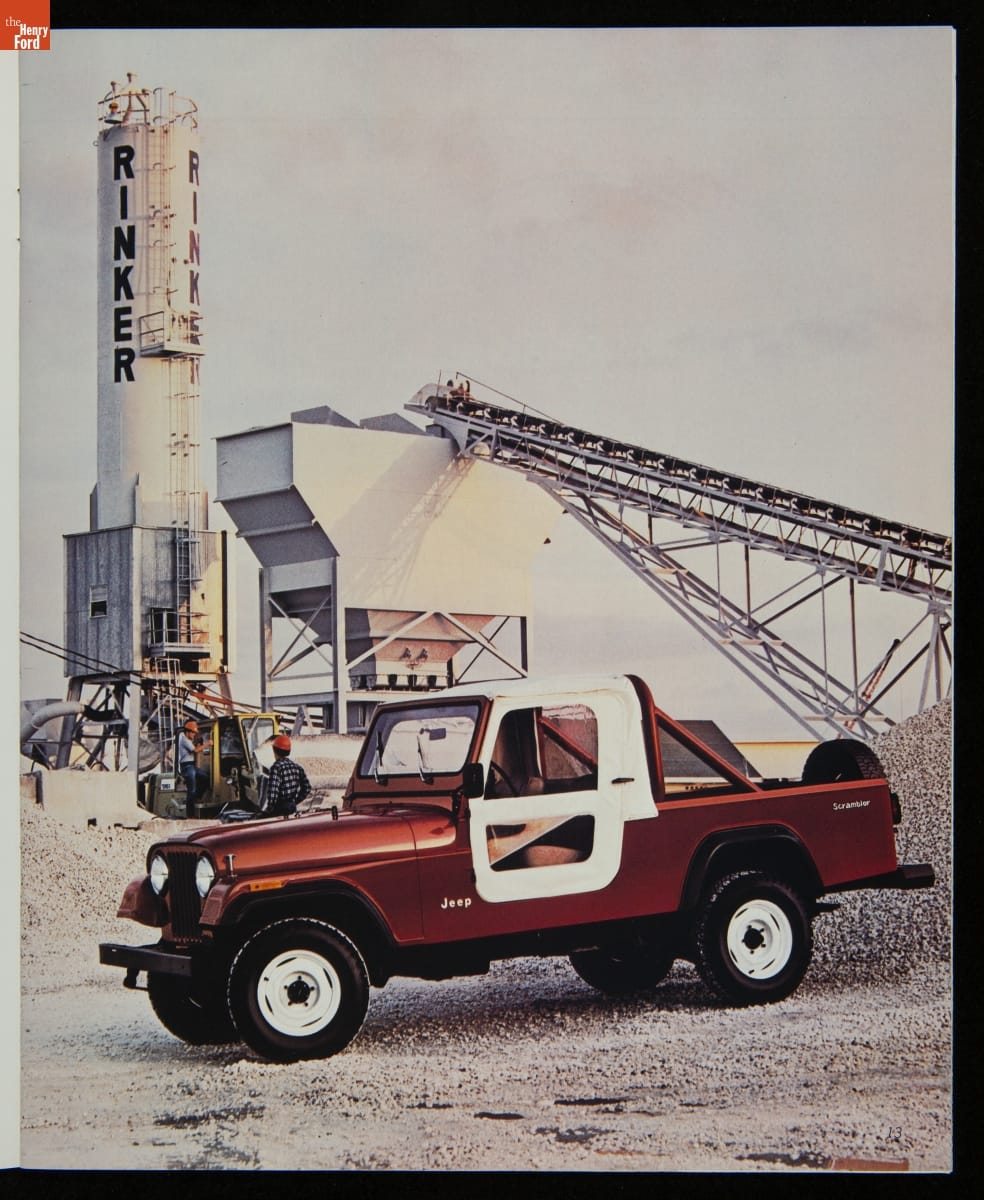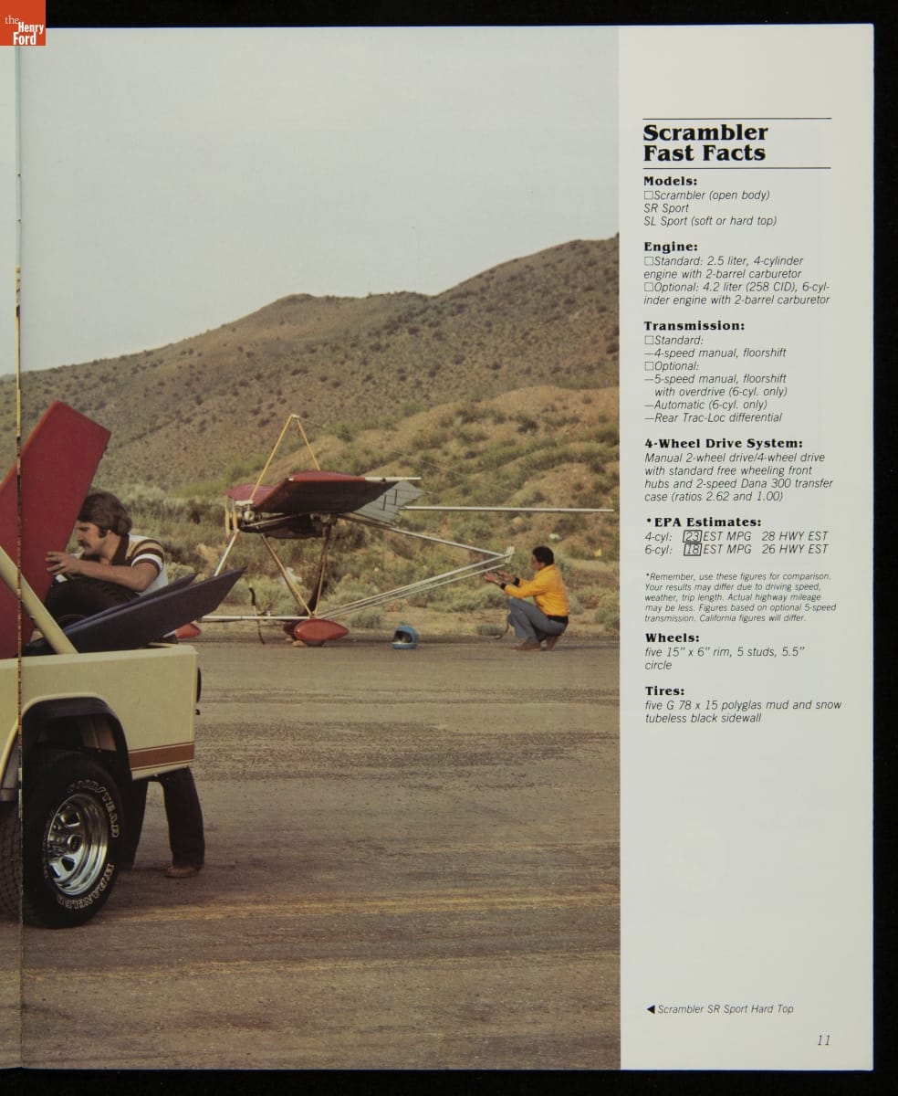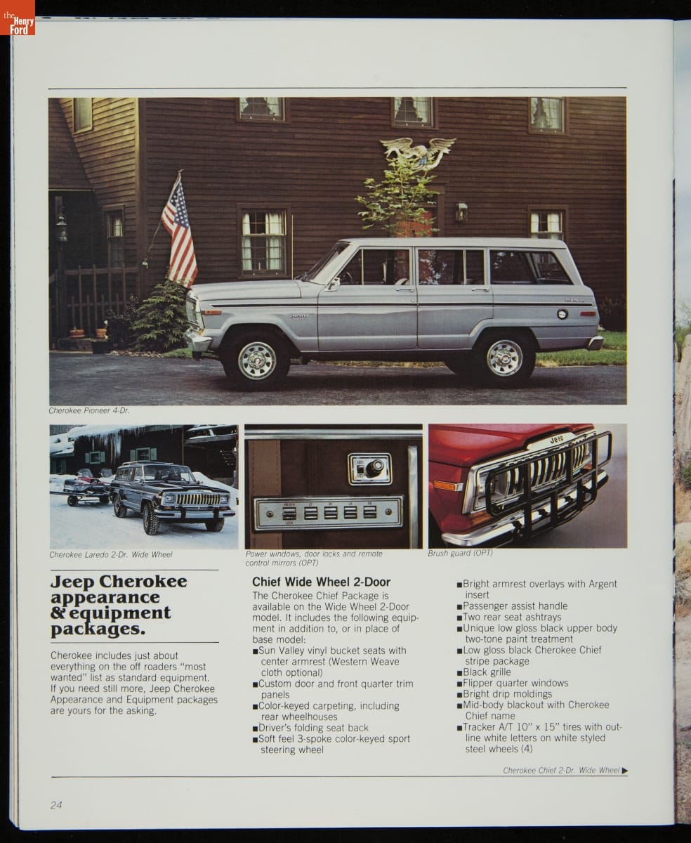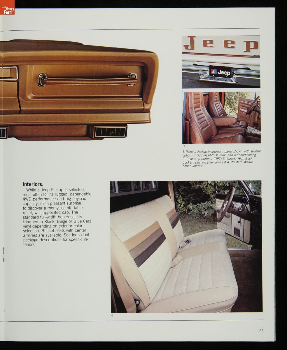 AMC's Jeep brand distinguished itself from the competition in this 1983 brochure. Jeep's pickups, wagons, and SUVs projected a rugged, off-road image. But by 1983, even the CJ-7 -- a direct descendant of the original military jeep -- was roomy and practical enough to serve as a family car. Jeep sold more than 113,000 vehicles worldwide in the 1983 calendar year.
