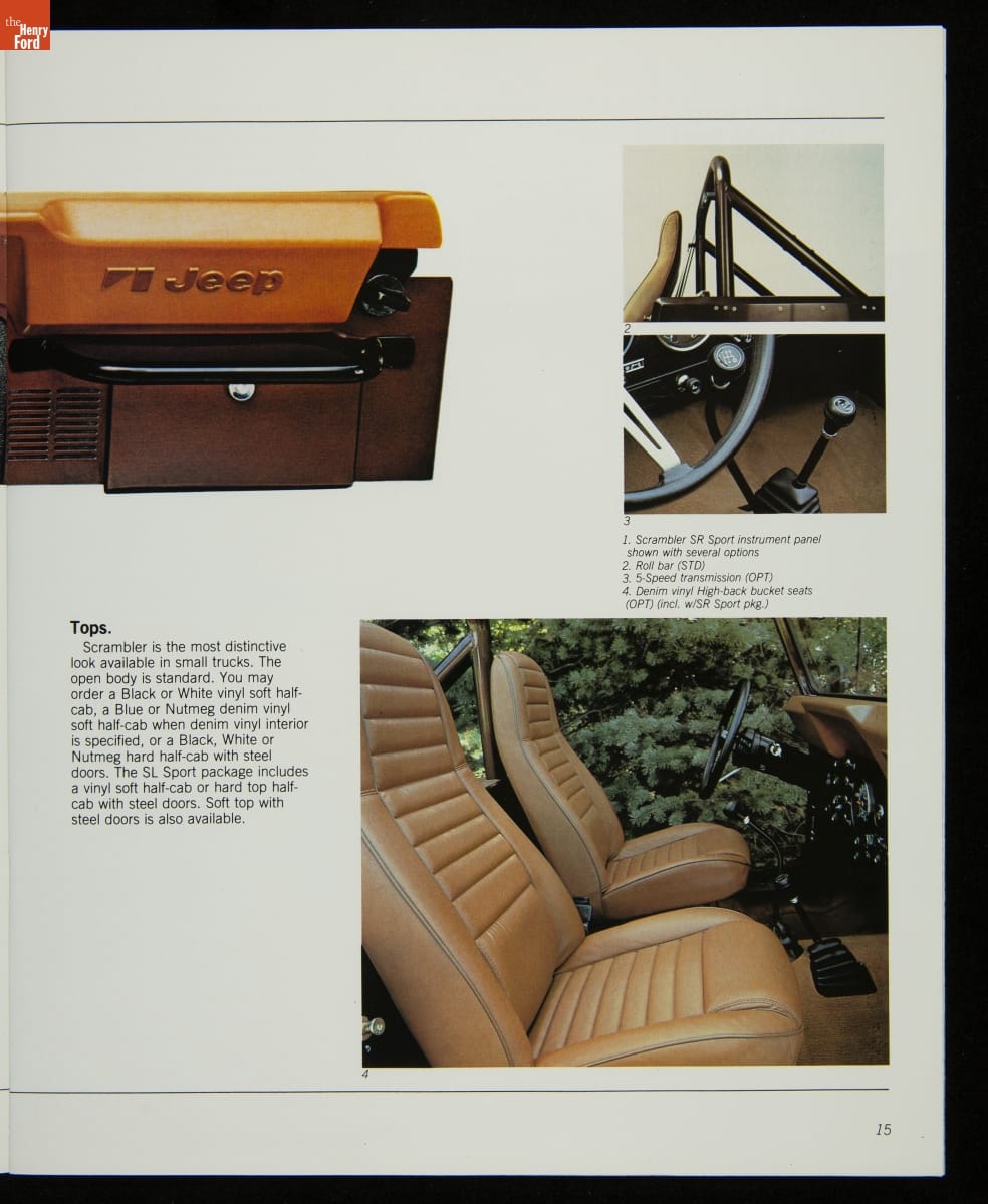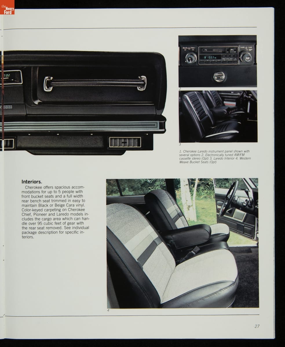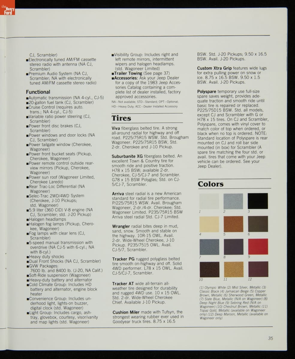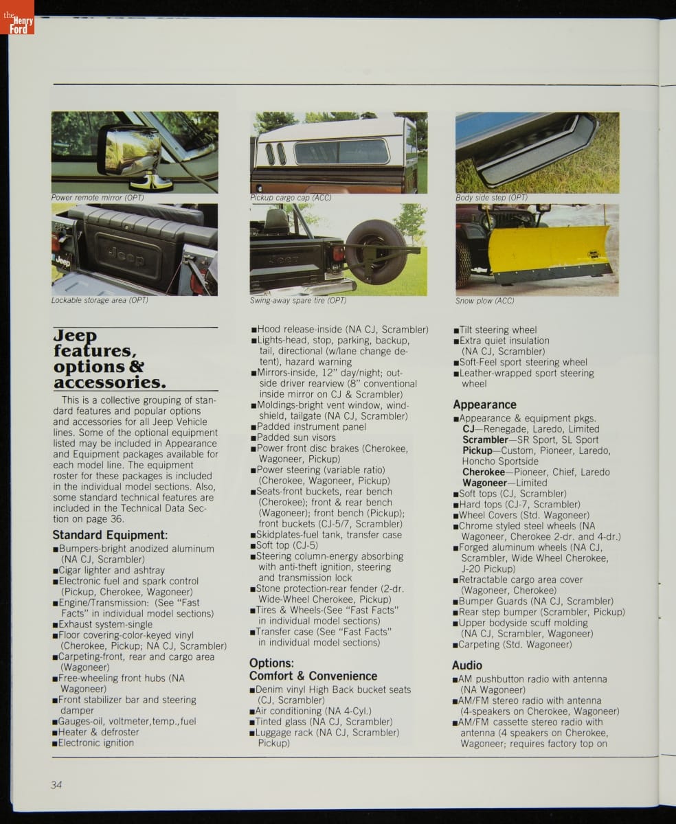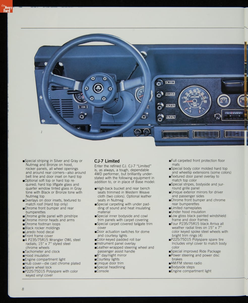 AMC's Jeep brand distinguished itself from the competition in this 1983 brochure. Jeep's pickups, wagons, and SUVs projected a rugged, off-road image. But by 1983, even the CJ-7 -- a direct descendant of the original military jeep -- was roomy and practical enough to serve as a family car. Jeep sold more than 113,000 vehicles worldwide in the 1983 calendar year.