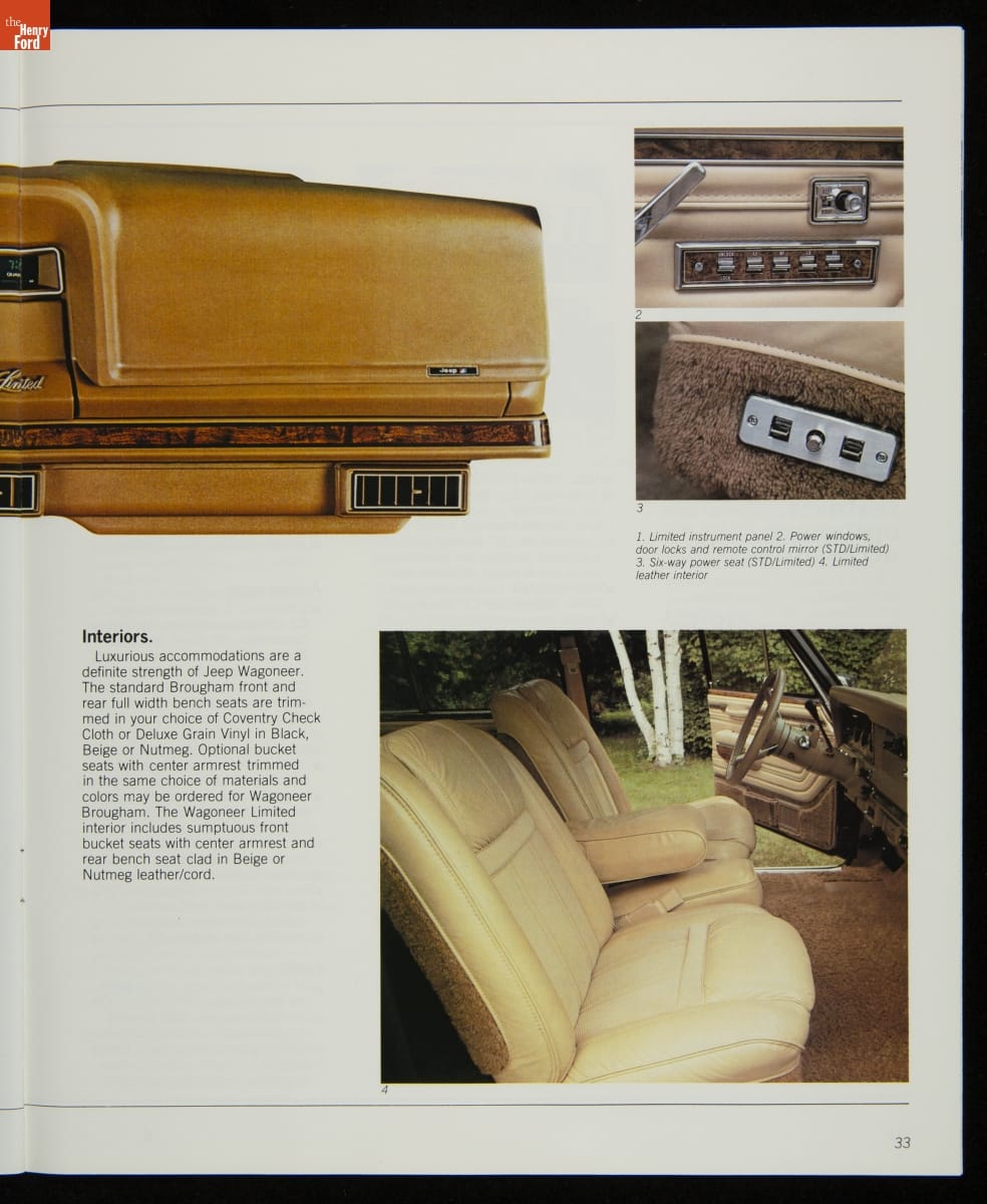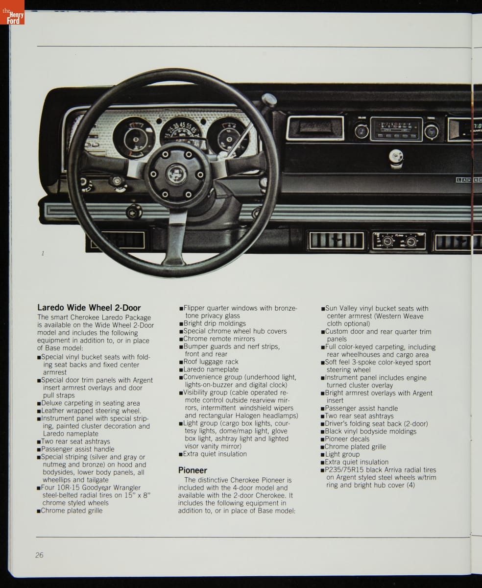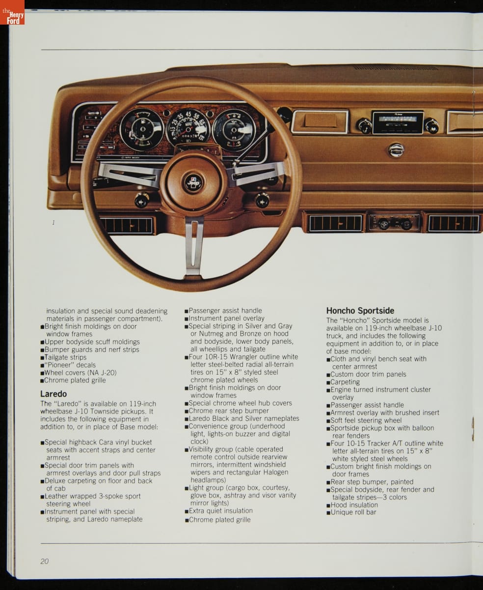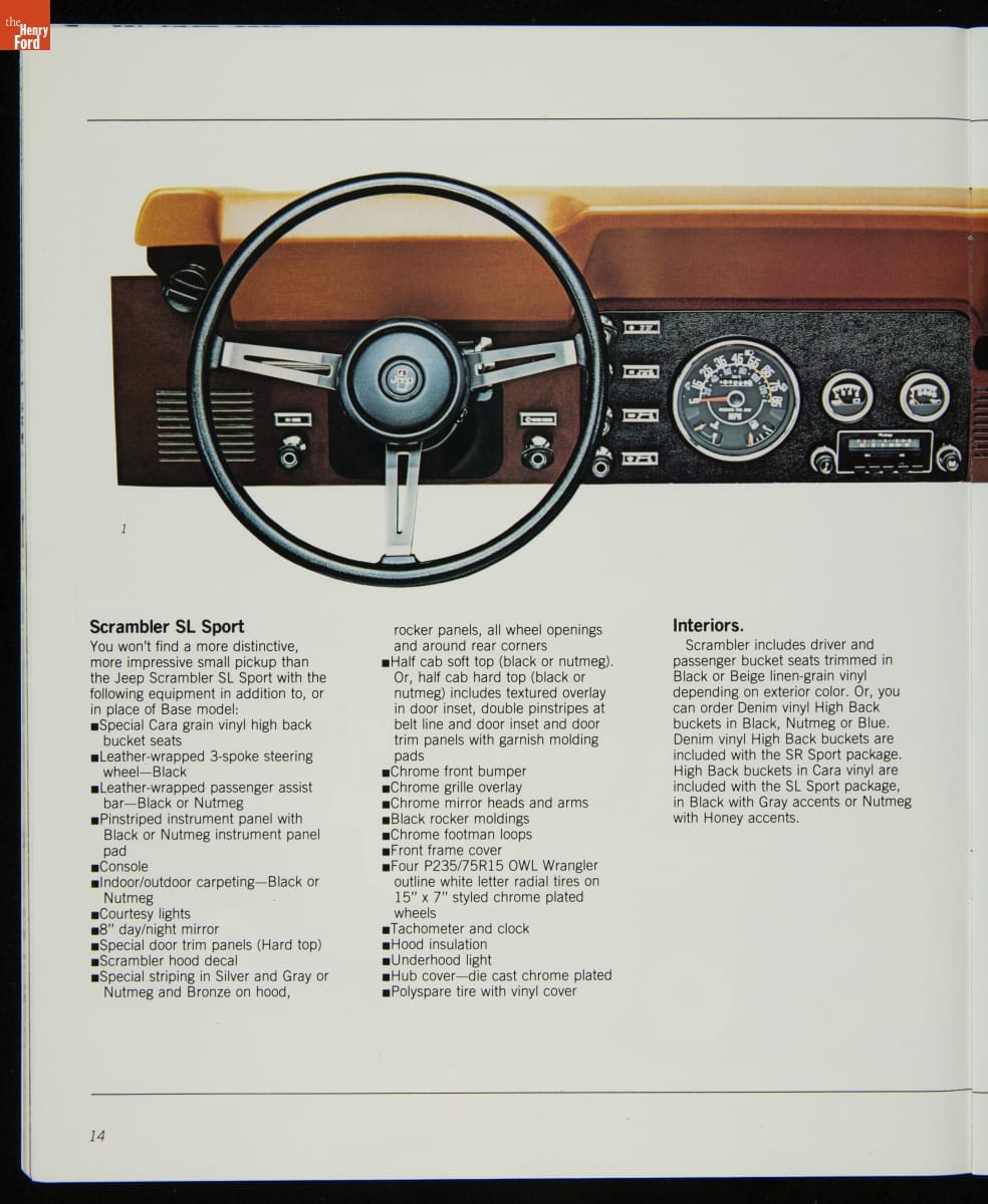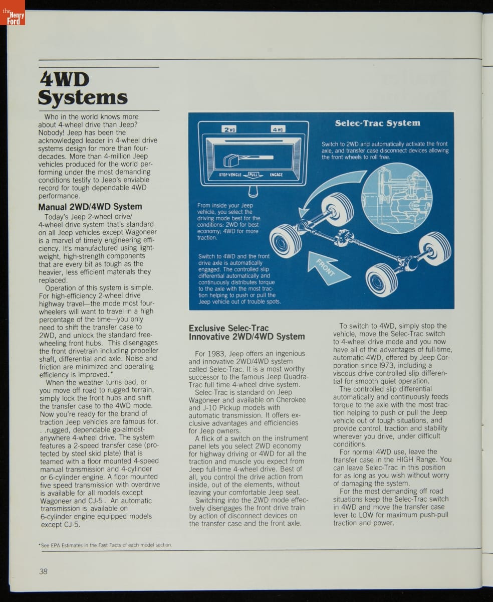 AMC's Jeep brand distinguished itself from the competition in this 1983 brochure. Jeep's pickups, wagons, and SUVs projected a rugged, off-road image. But by 1983, even the CJ-7 -- a direct descendant of the original military jeep -- was roomy and practical enough to serve as a family car. Jeep sold more than 113,000 vehicles worldwide in the 1983 calendar year.