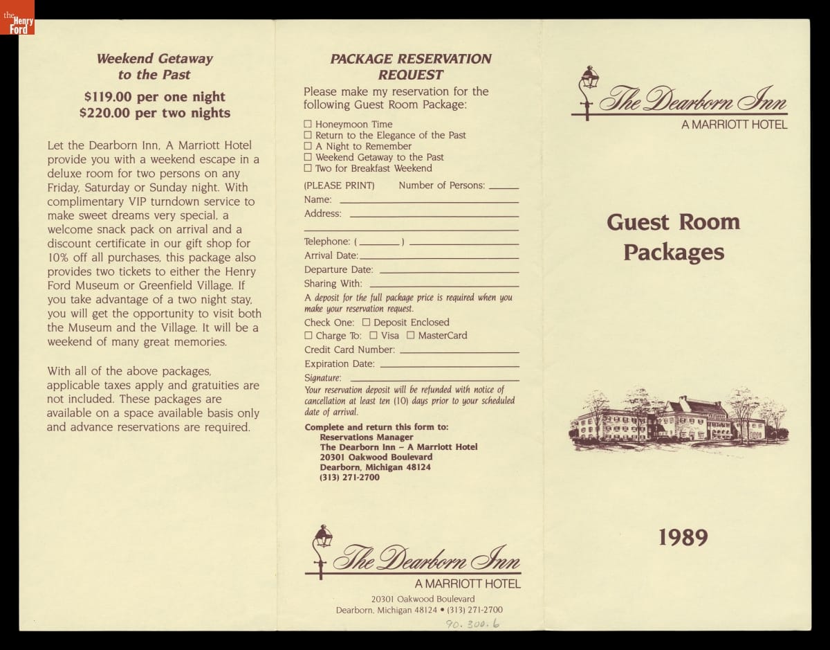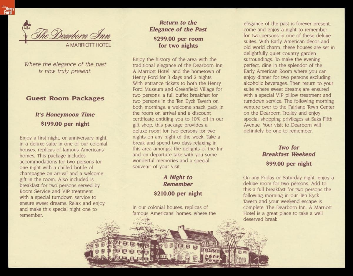 "Guest Room Packages,," The Dearborn Inn: A Marriott Hotel, 1989