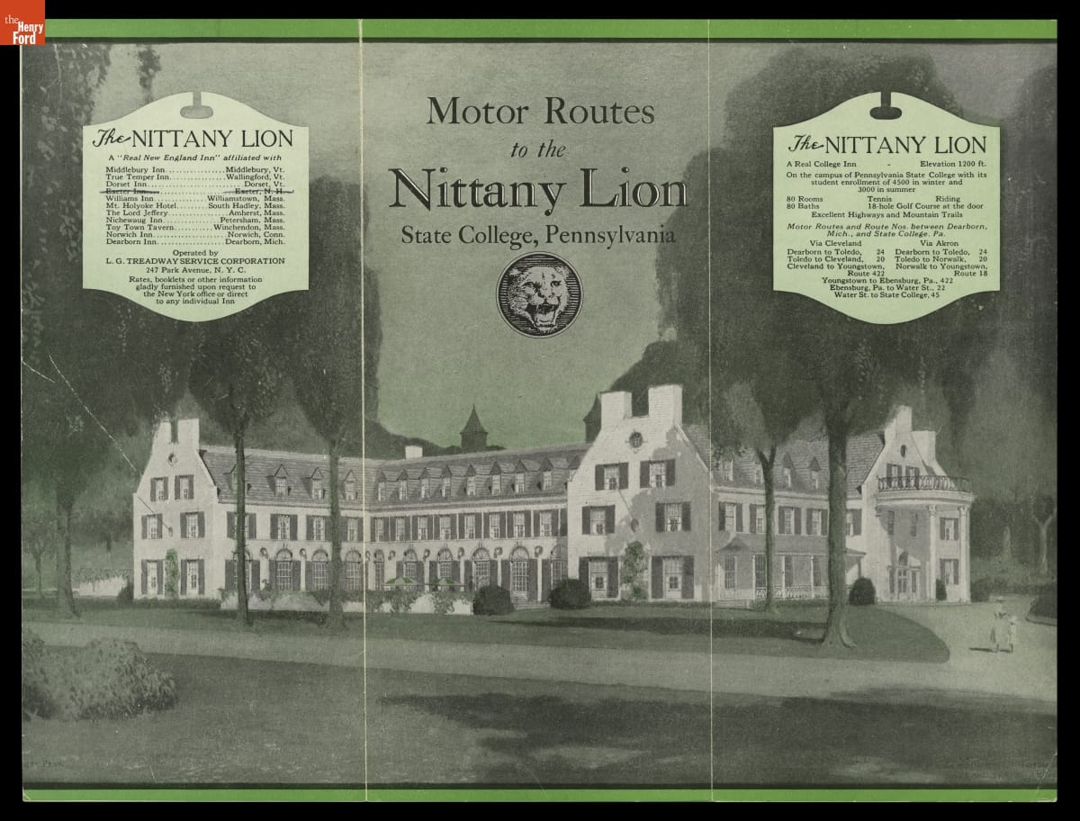 "Motor Routes to the Dearborn Inn" and "Motor Routes to the Nittany Lion," 1932