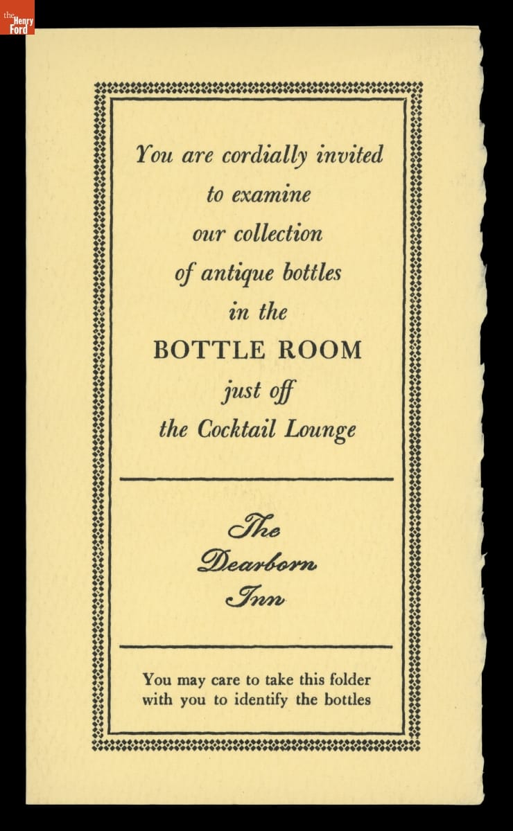 "You Are Cordially Invited to Examine our Collection of Antique Bottles in the Bottle Room...," circa 1960
