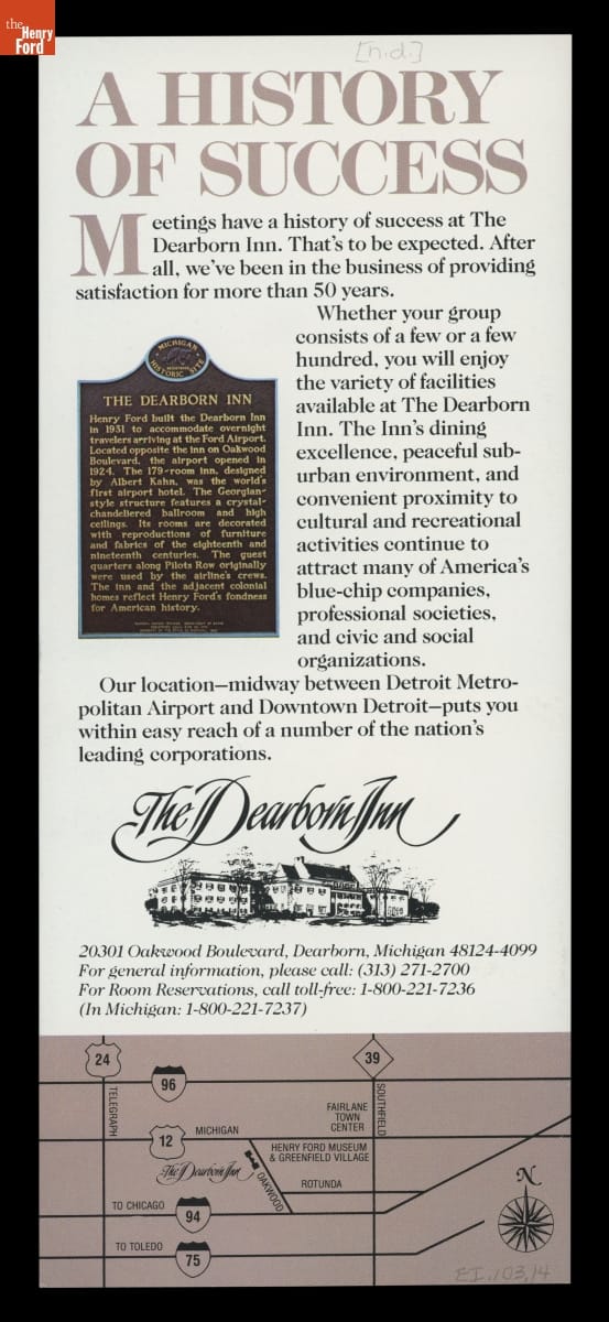 "The Dearborn Inn: Meeting Your Meeting Needs," 1981-1987
