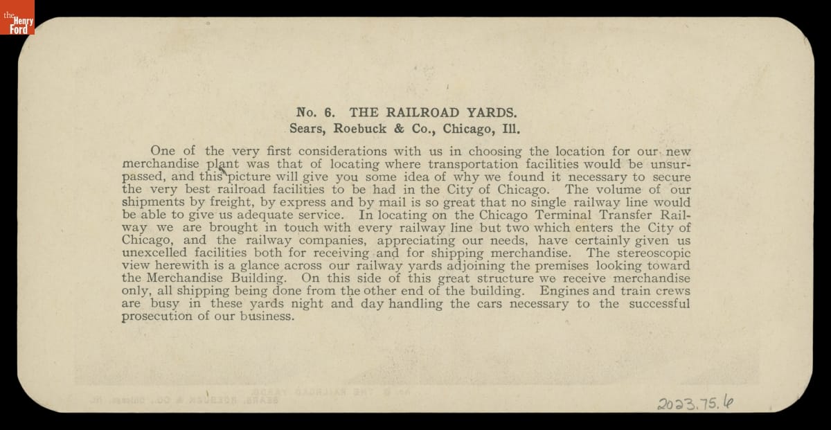 "The Railroad Yards. Sears, Roebuck & Co., Chicago, Ill.," 1906-1908