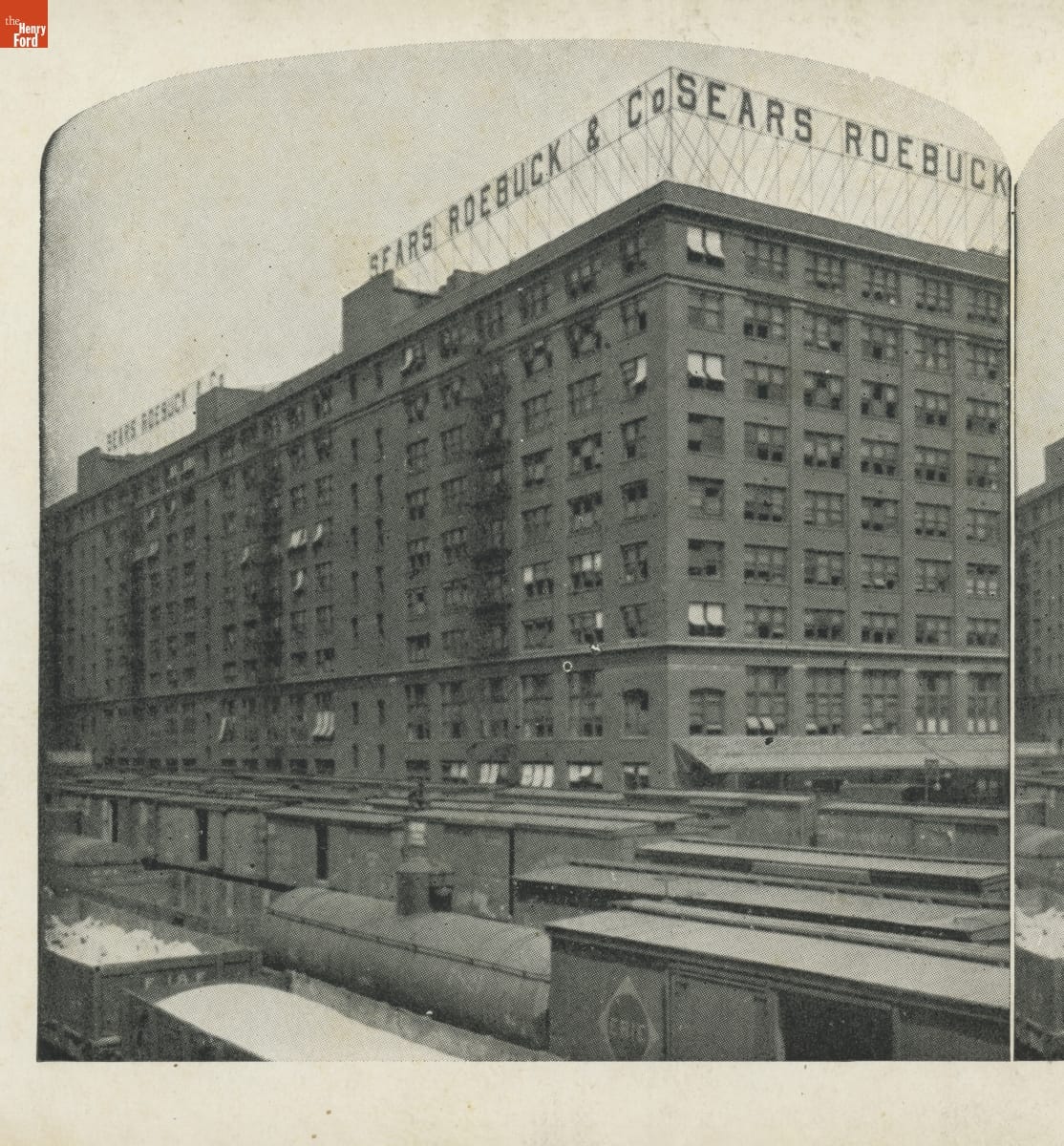 Mail-order firm Sears, Roebuck, & Co. had become one of America's largest corporations by the early 1900s. Sears was particularly popular among rural Americans, as it offered better options, lower costs, and more efficient delivery methods than traditional general stores. This stereograph, one of a set of 50 sold through the Sears catalog beginning in 1908, offered a behind-the-scenes look at the company's operation.
