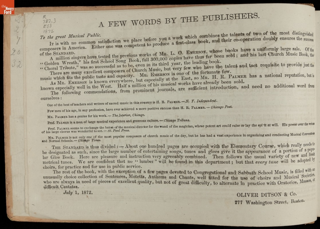 "The Standard: A Collection of Sacred and Secular Music," 1872