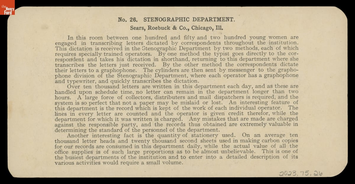 "Stenographic Department. Sears, Roebuck & Co., Chicago, Ill.," 1906-1908