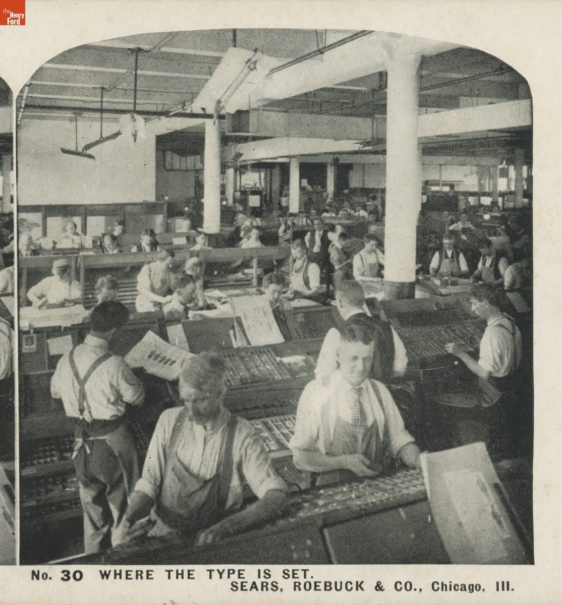"Where the Type is Set. Sears, Roebuck & Co., Chicago, Ill.," 1906-1908