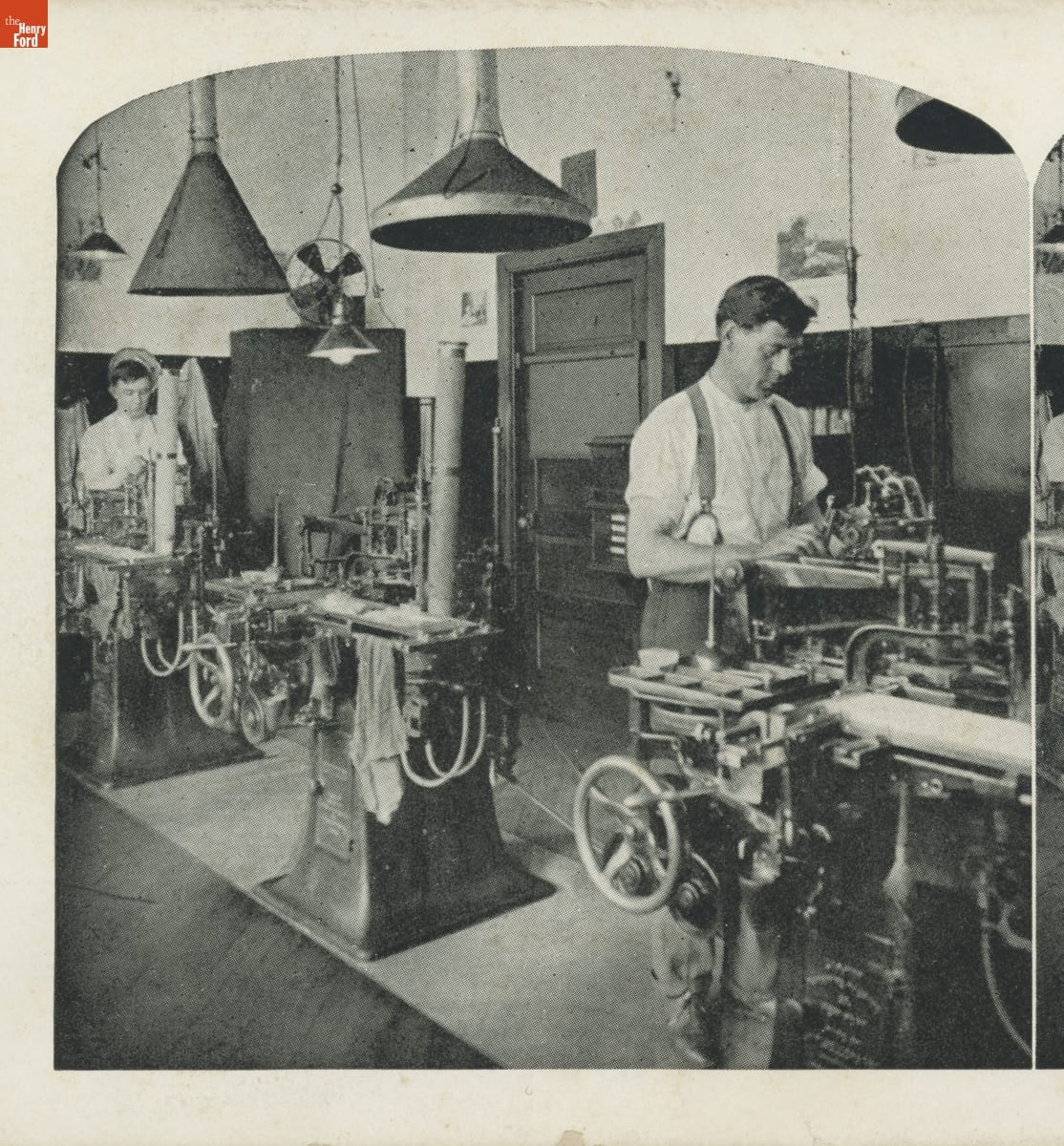 Mail-order firm Sears, Roebuck, & Co. had become one of America's largest corporations by the early 1900s. Sears was particularly popular among rural Americans, as it offered better options, lower costs, and more efficient delivery methods than traditional general stores. This stereograph, one of a set of 50 sold through the Sears catalog beginning in 1908, offered a behind-the-scenes look at the company's operation.