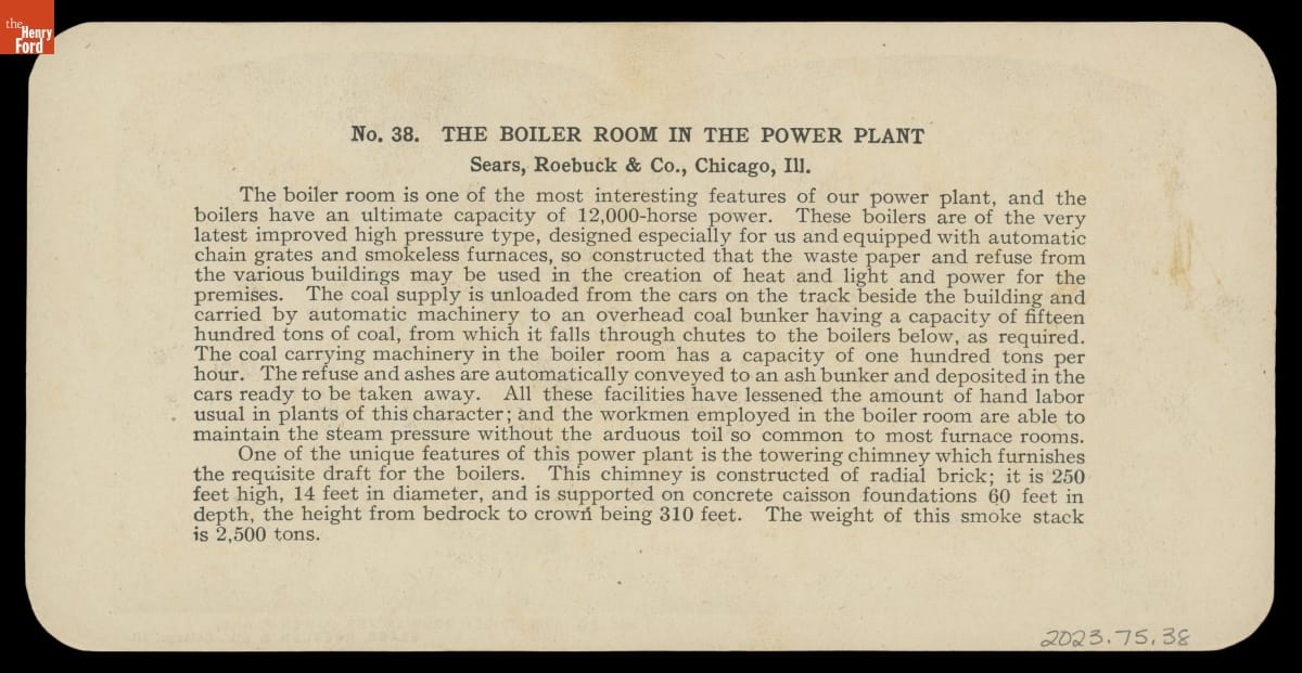 "The Boiler Room in the Power Plant. Sears, Roebuck & Co., Chicago, Ill.," 1906-1908
