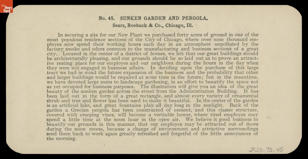 "Sunken Garden and Pergola. Sears, Roebuck & Co., Chicago, Ill.," 1906-1908