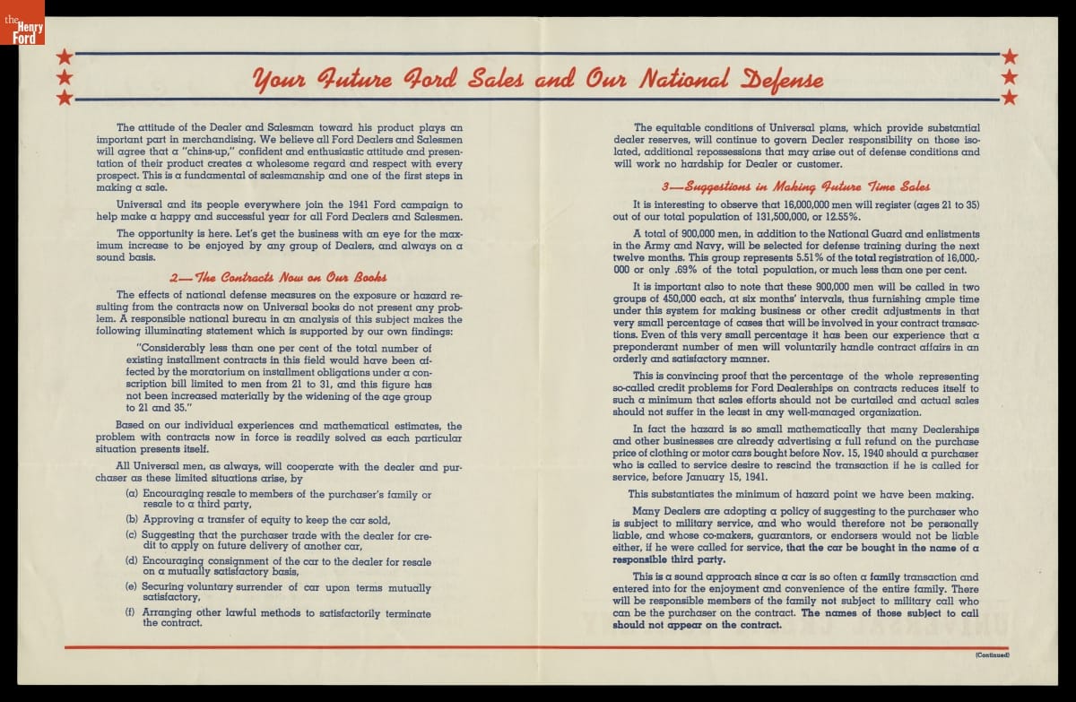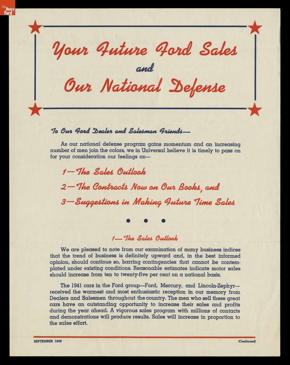 "Your Future Ford Sales and Our National Defense," September 1940