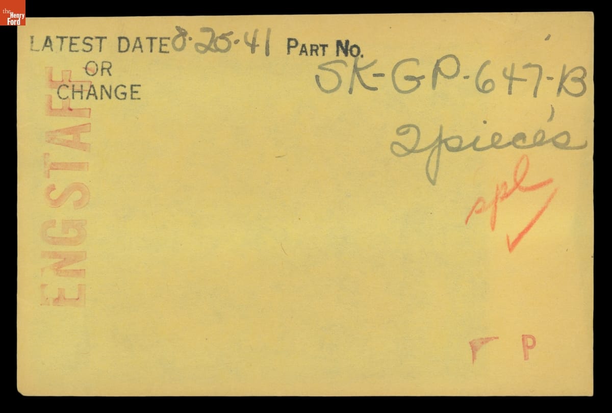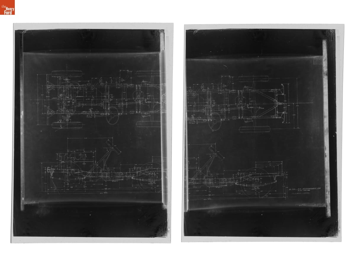 The Ford Motor Company created over a million parts drawings from 1903 to 1957. Many of these drawings specify engineering requirements for the components of Ford-made vehicles--including automobiles, trucks, tractors, military vehicles and Tri-motor airplanes. Others document assembly components, stages of casting and forging, or experimental designs. Beginning in the 1940s, Ford transferred the drawings to microfilm.