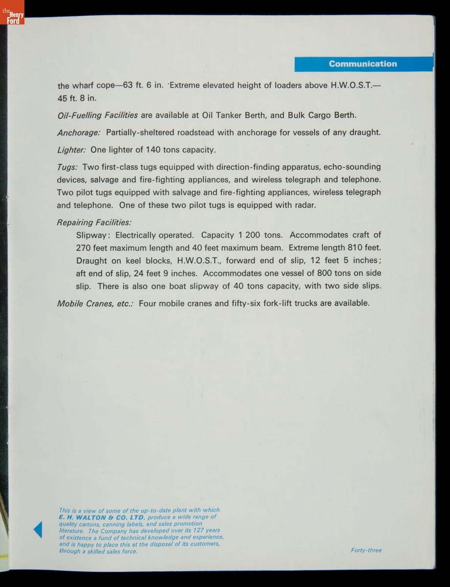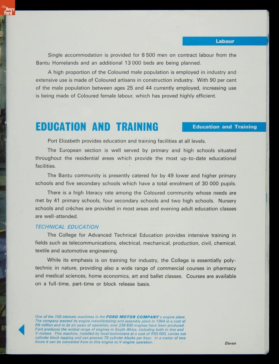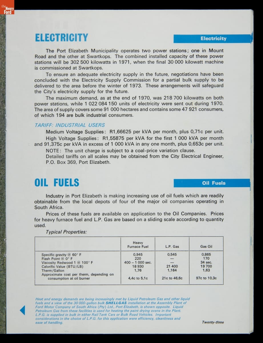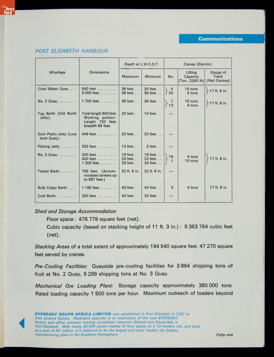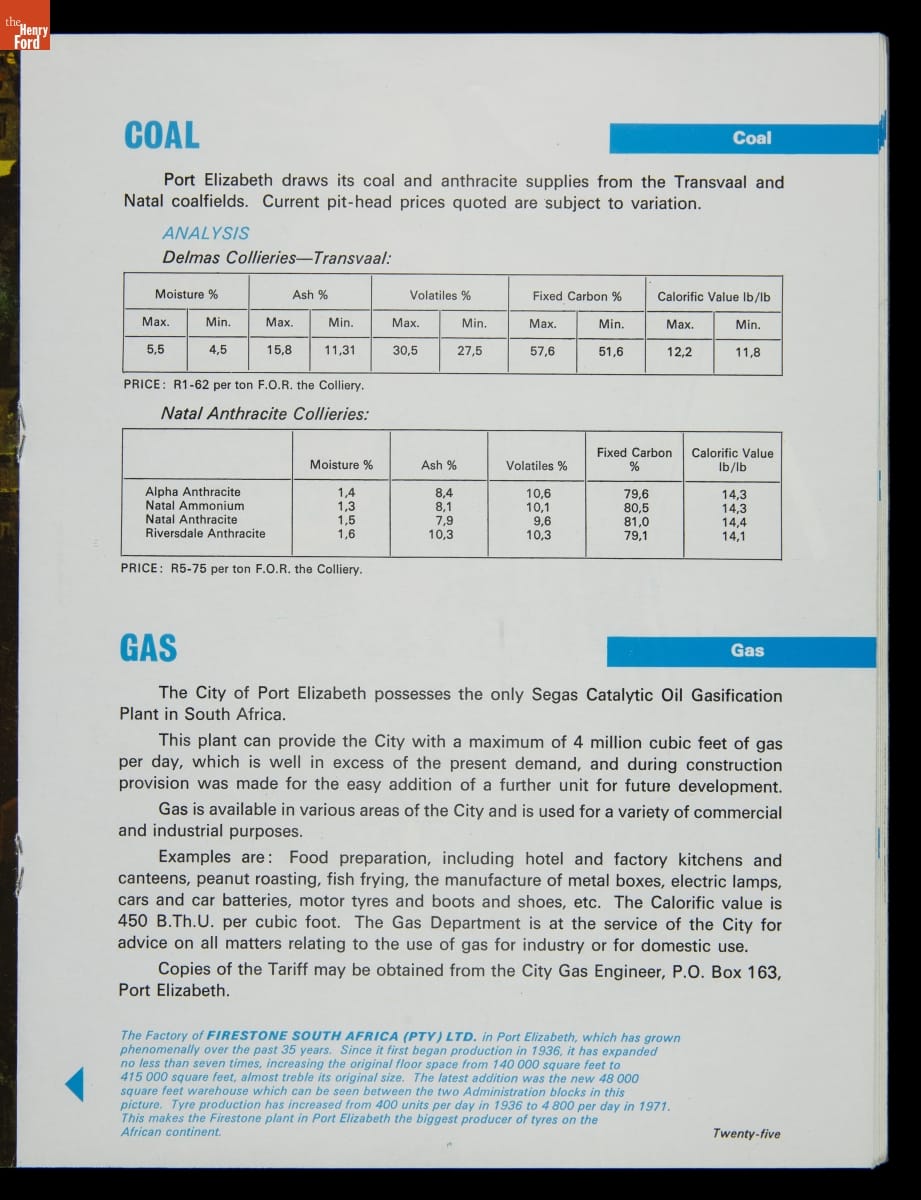 The Port Elizabeth Publicity Association created this brochure to promote the benefits of the South African city. Sections touted the advantages of the region's infrastructure, climate, location, and commercial and industrial possibilities for potential investors. However, the publication's glowing descriptions glossed over apartheid -- the system of harsh racial segregation imposed by the minority white South African government.