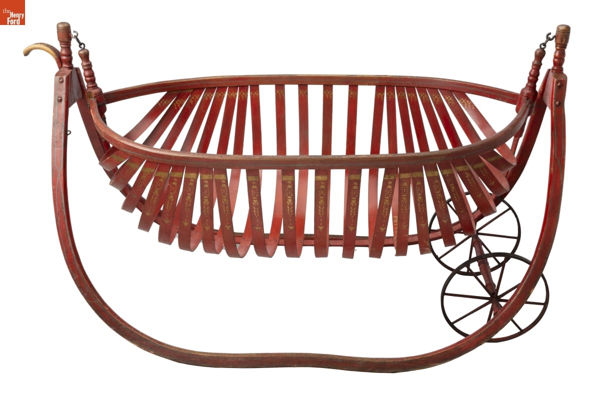 Cradle patented by Abner Woodward of Shelburne Falls, Massachusetts, and made by incarcerated individuals from Indiana State Prison North for Ford-Johnson Company, both of Michigan City, Indiana.