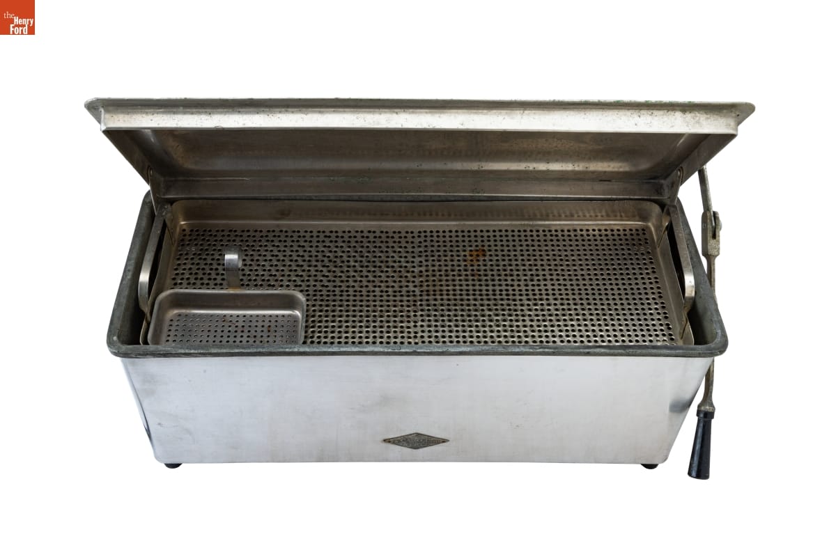 Sterilizer made by Wilmot Castle Company of Rochester, New York, Plug made by Harvey Hubbell, Inc. of Bridgeport, Connecticut, and switch made by Arrow-Hart & Hegeman Electric Company of Hartford, Connecticut.