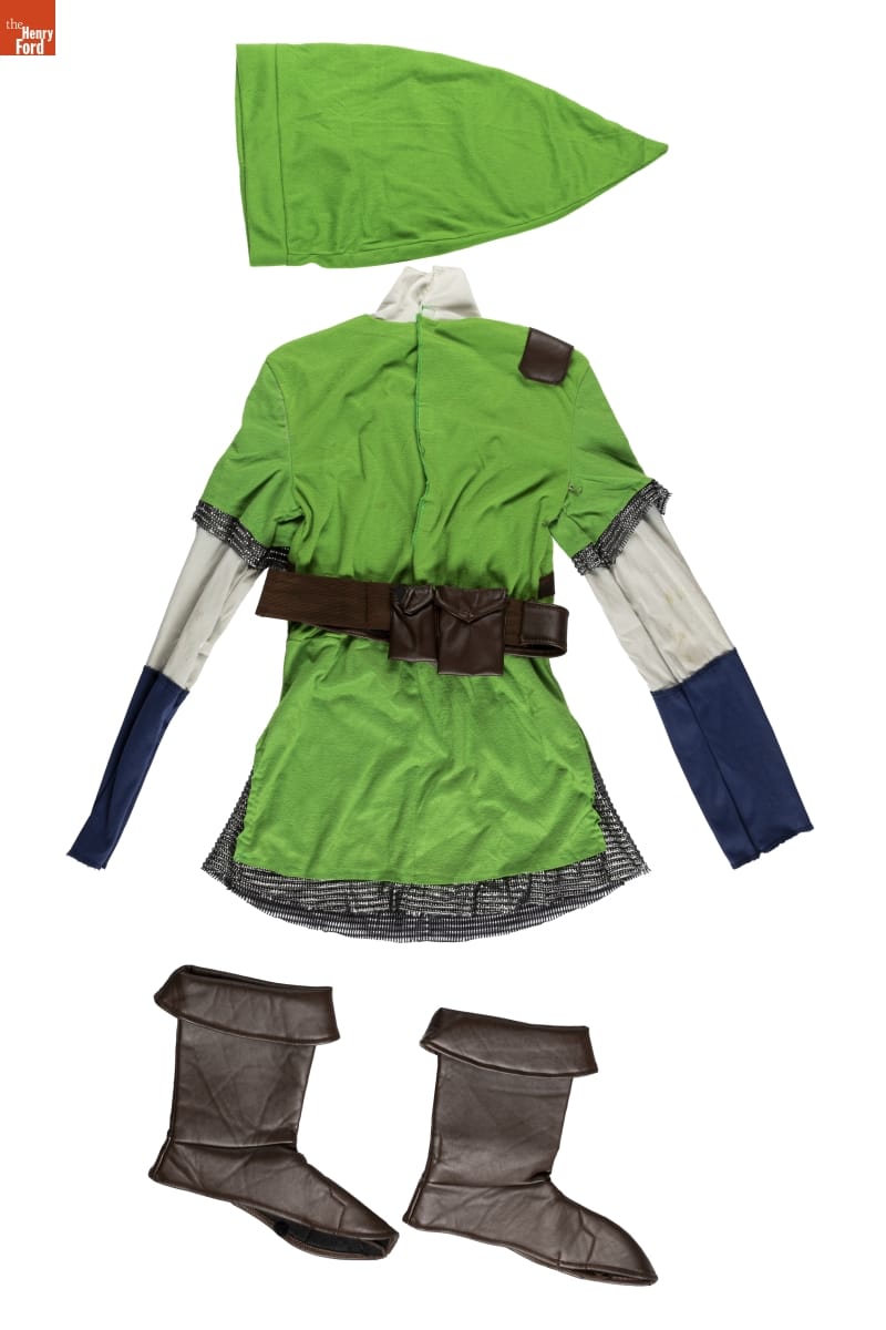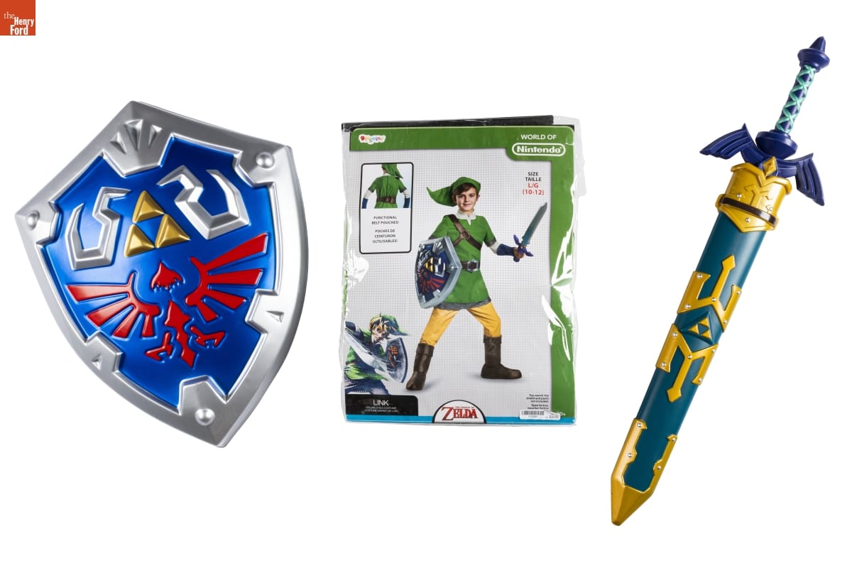"Link" Halloween Costume with Toy Sword and Shield, Worn by Isaac Morland in 2021