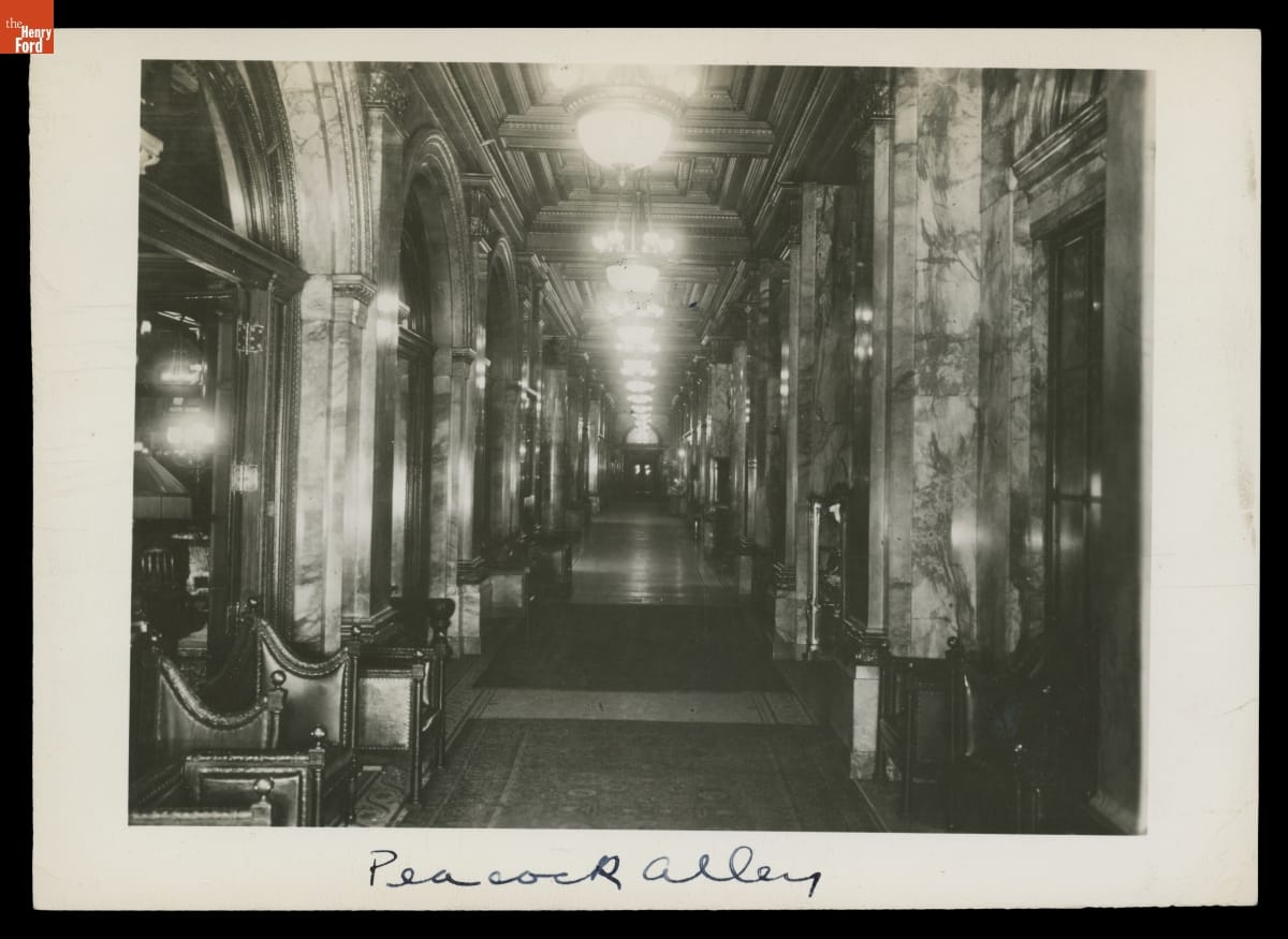 "Peacock Alley" inside the Waldorf-Astoria Hotel, New York City, 1920-1925