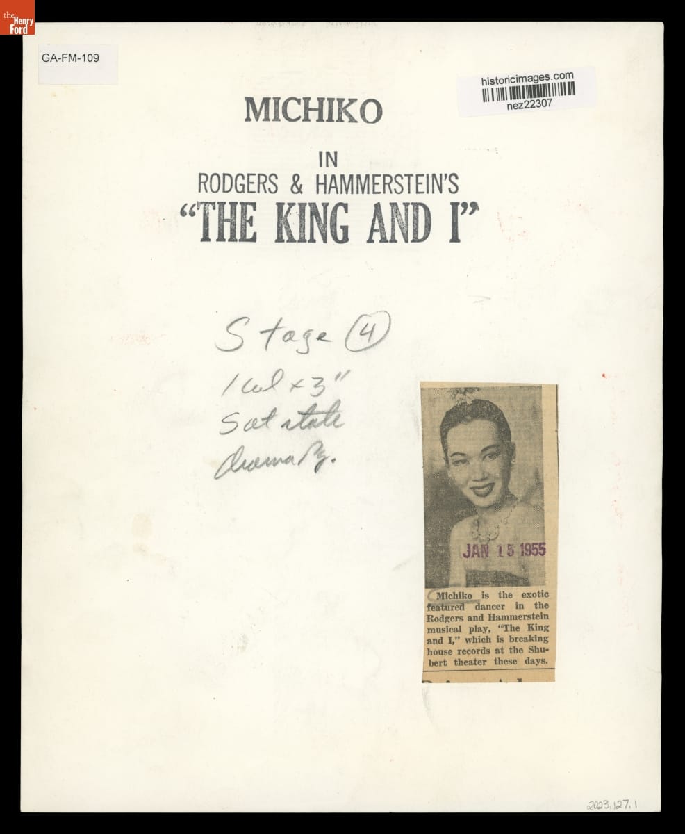 Michiko Iseri, Choreographer and Dancer in Rodgers & Hammerstein's "The King and I," 1955