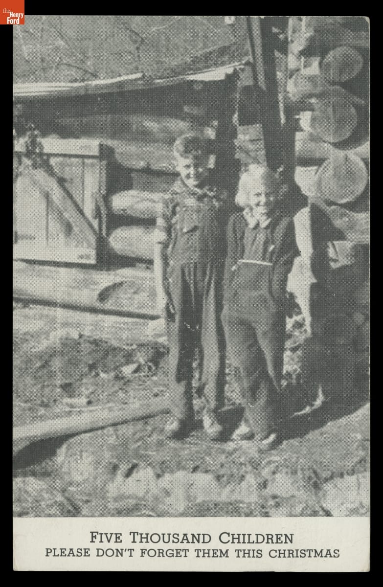 "Five Thousand Children: Please Don't Forget Them this Christmas," Postcard Sent to Clara Ford, 1943