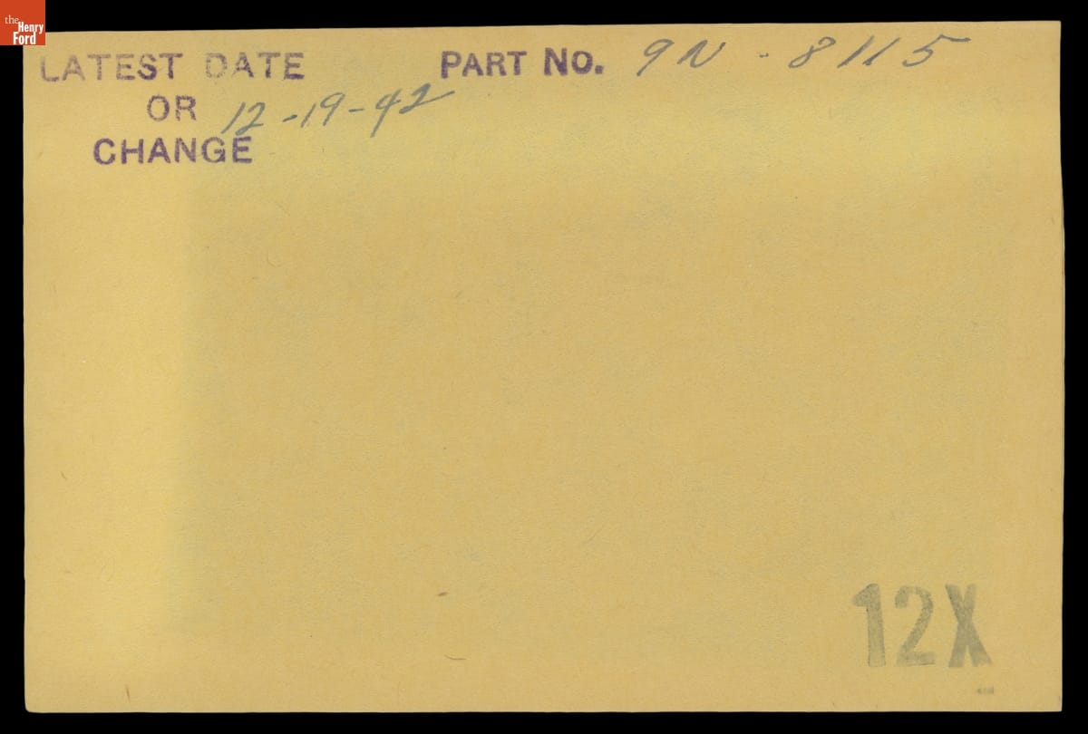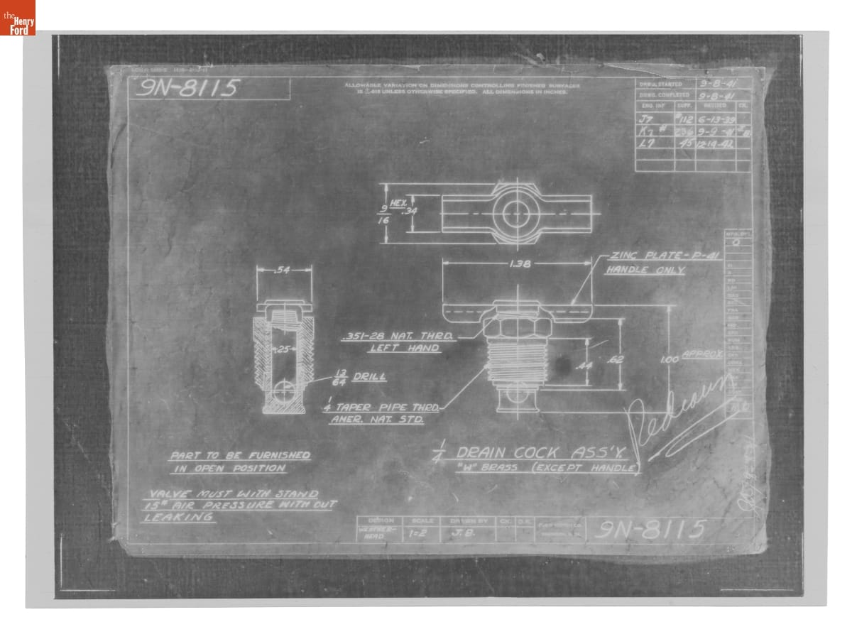 The Ford Motor Company created over a million parts drawings from 1903 to 1957. Many of these drawings specify engineering requirements for the components of Ford-made vehicles--including automobiles, trucks, tractors, military vehicles and Tri-motor airplanes. Others document assembly components, stages of casting and forging, or experimental designs. Beginning in the 1940s, Ford transferred the drawings to microfilm.